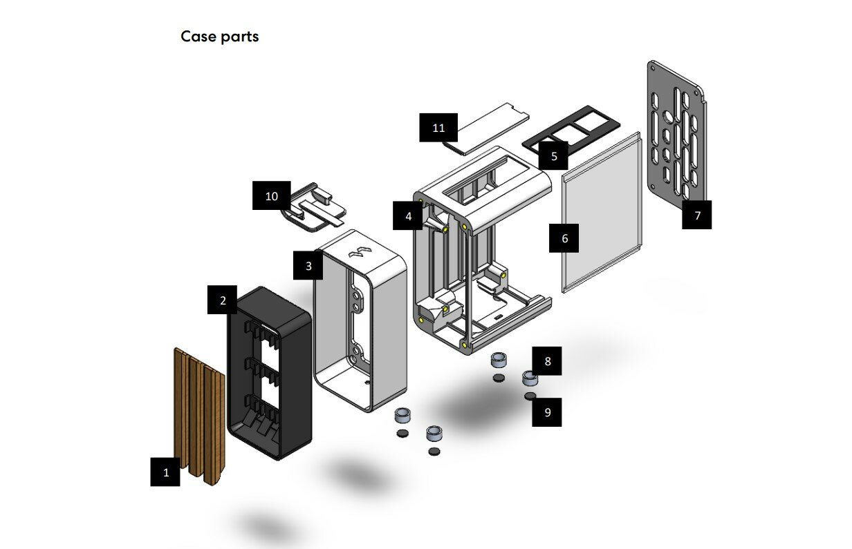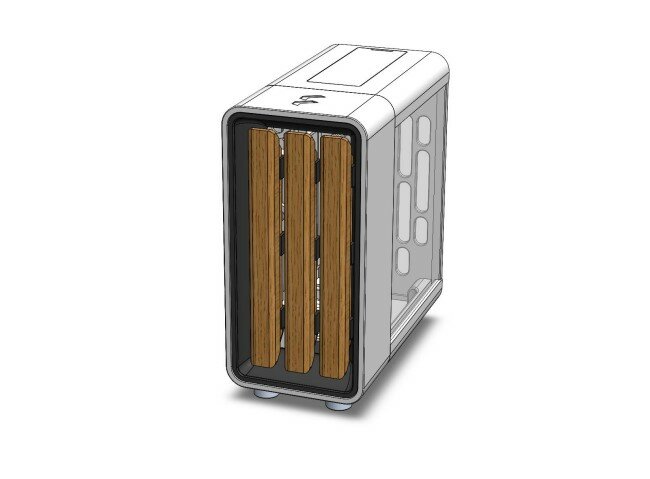 Небольшой корпус культового дизайна North состоит из 17 компонентов (11 отдельных частей) и имеет размеры 105 × 50 × 96 мм. За передними панелями есть место для двух 40-мм вентиляторов.