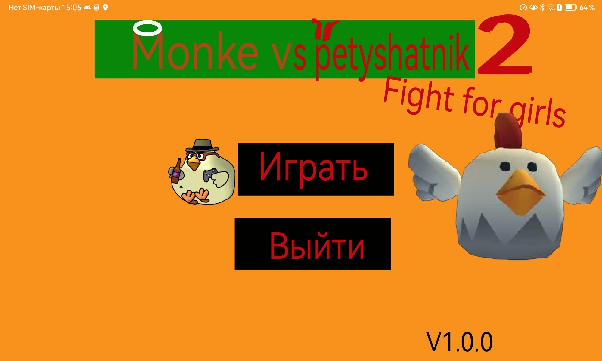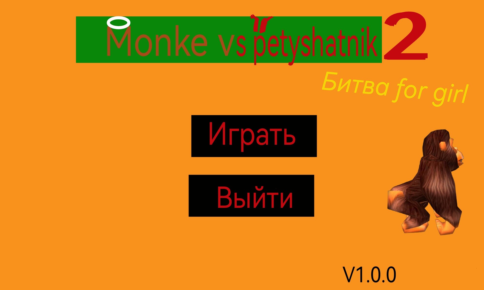 Monke vs petyshatnik 2 В этой игре вы можете сражаться против чикенов либо наоборот стать на их нею сторону, победите всех злодеев и пройдите игру!