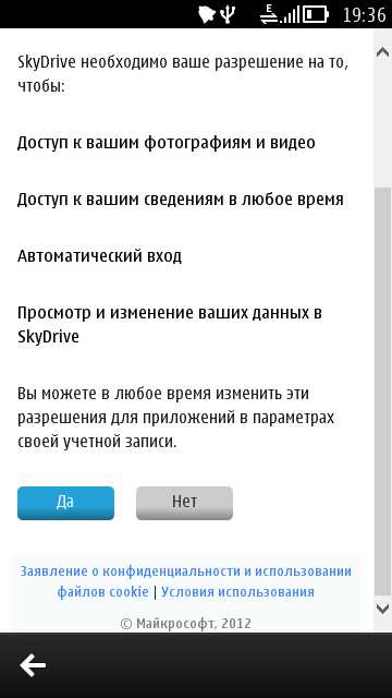 Для возможности использования облачного сервиса SkyDrive необходимо иметь идентификатор Windows Live ID.