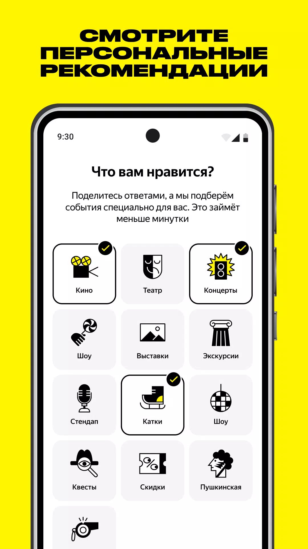 — смотреть топы и персональные подборки событий;