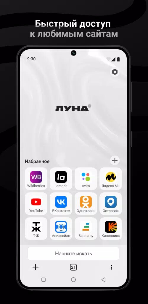 Браузер Луна — простой и надежный браузер для просмотра сайтов и поиска информации в Интернете.