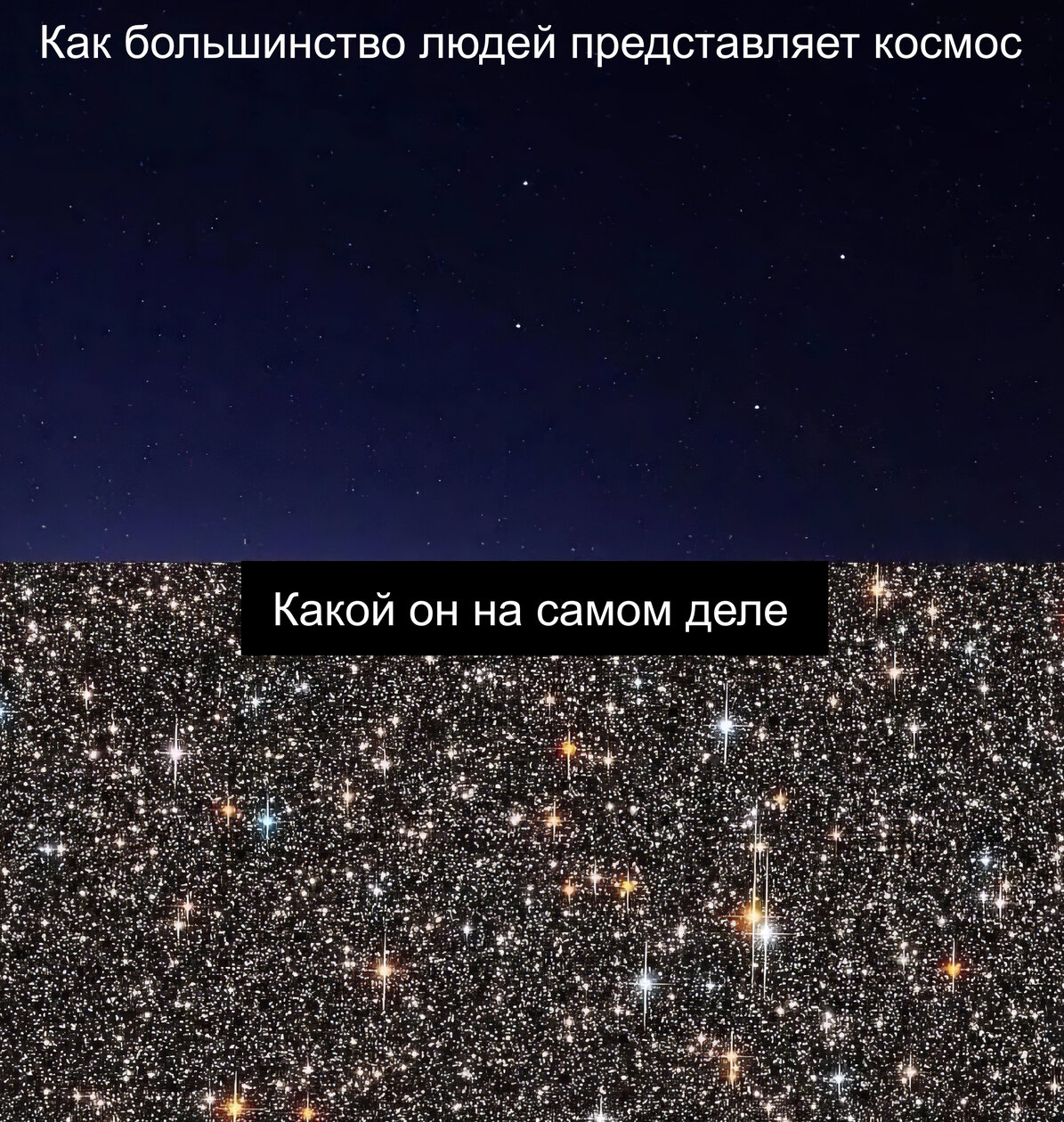19 августа 2024, 18:33 Как небо видим мы и как небо видит телескоп уровня Уэбба Картинки / Космос Genshin_Infarkt Алмазный автор Космос 11,4K участников Вступить 3 комментария по лайкам по дате Оставьте комментарий... Limows 1 годXiaomi ❤︎ Как космос видят жители городов pjany-jangel2 1 год На самом деле космос представляет собой сплошное поле звёзд, тёмные промежутки — это место света, который ещё не долетел до наблюдателя. Limows 1 годXiaomi ❤︎ Не, есть вполне себе войды, где нет ничего.
