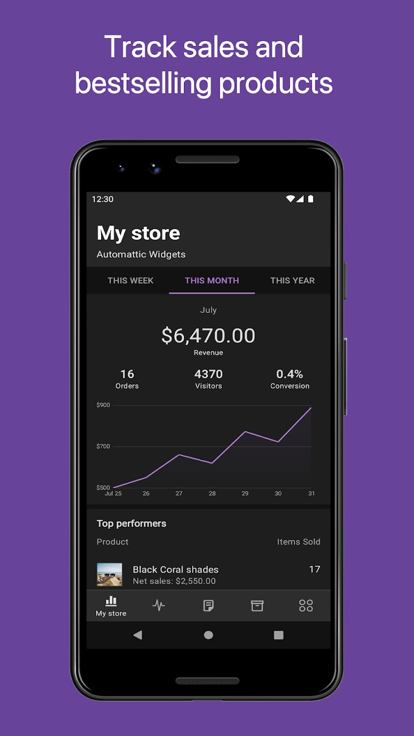 Управляйте своим бизнесом на ходу с помощью мобильного приложения WooCommerce. Добавляйте товары, создавайте заказы, принимайте быстрые платежи и следите за новыми продажами и ключевыми статистическими данными в реальном времени.