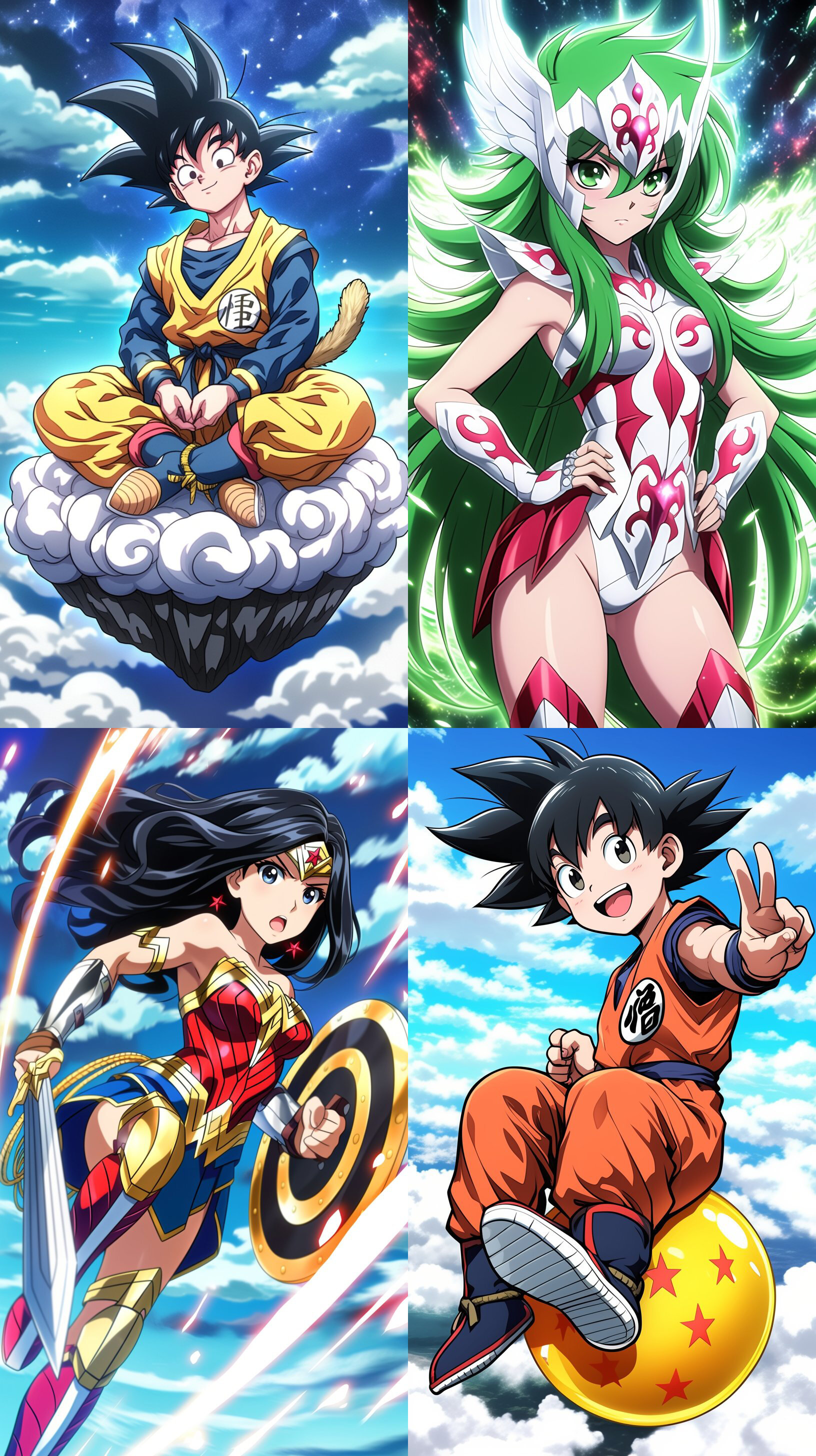 С таким запросом генерации получаются яркими, а персонажи часто изображаются в движении или в нестандартных позах. Мне кажется, что порой результат настолько хорош, что мало кто заподозрит здесь генерацию — скорее похож на какой-то официальный пост, кадр из мультика или как минимум человеческий фан-арт.