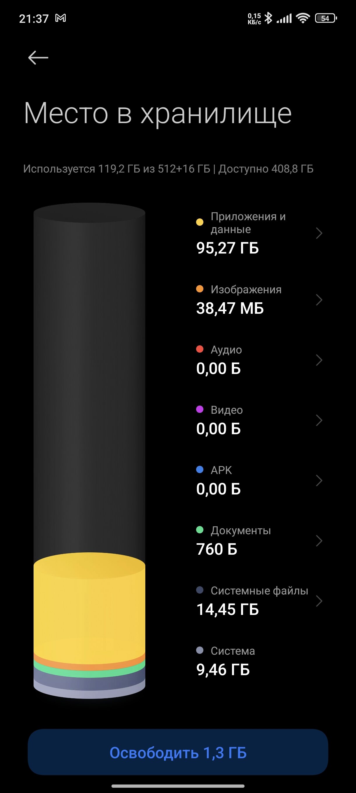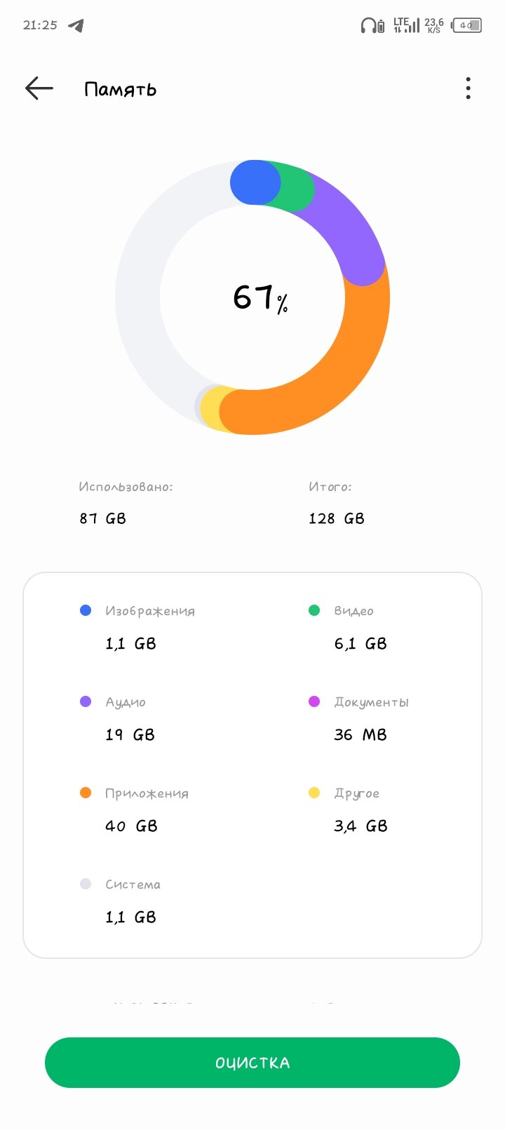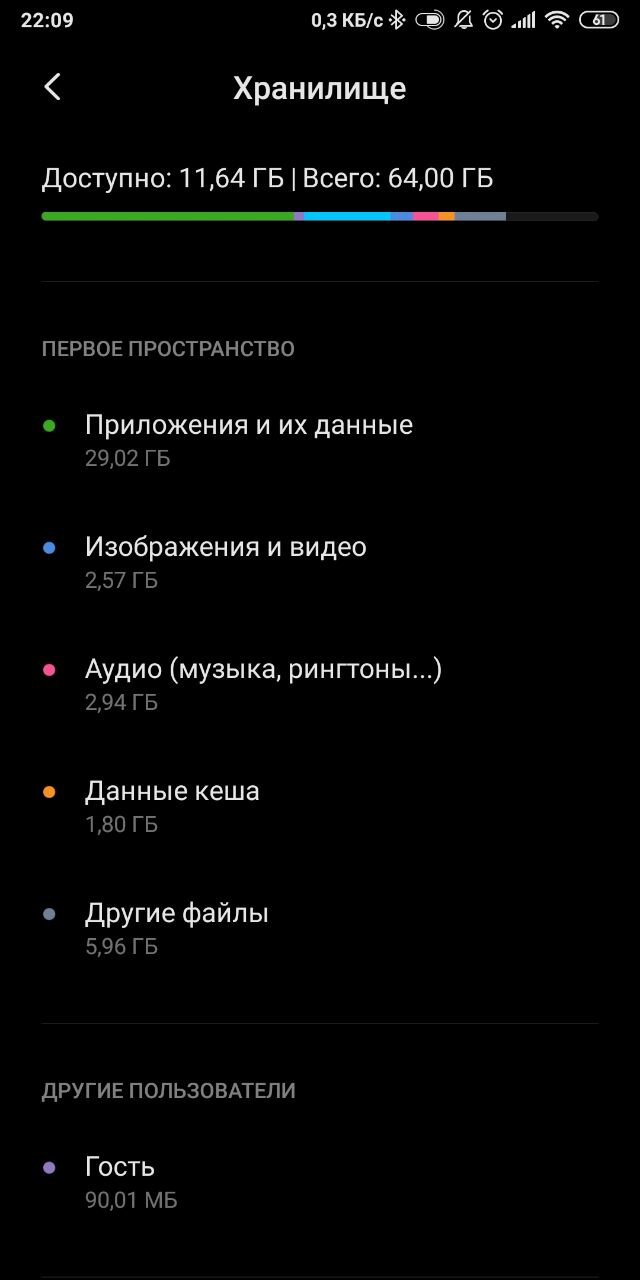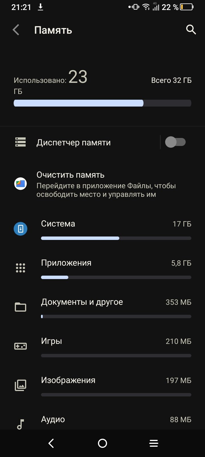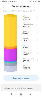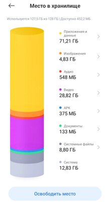 В целом самые главные потребители памяти — приложения и telegram/WhatsApp