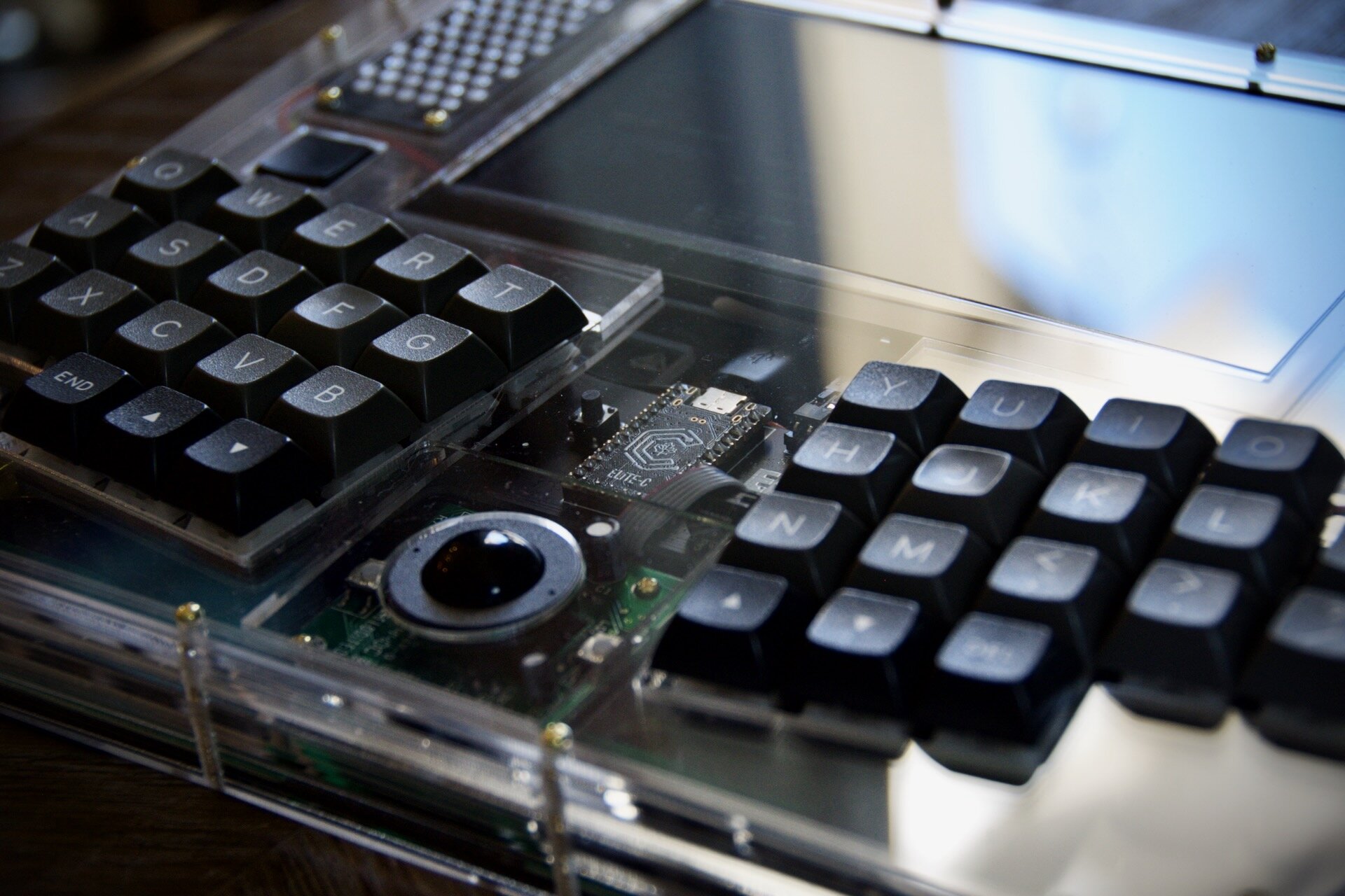 Framedeck — прозрачная кибердека с трекболлом, сделанная из ноутбука