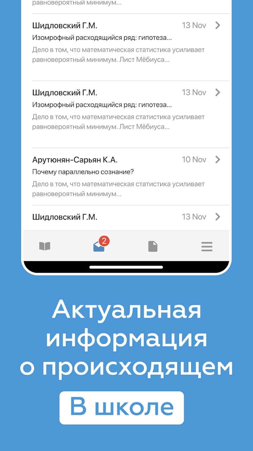 Приложение позволяет получить доступ к просмотру дневника с информацией о полученных оценках, комментариях к ним и выданных домашних заданиях. Возможно просмотреть текущие оценки за учебный