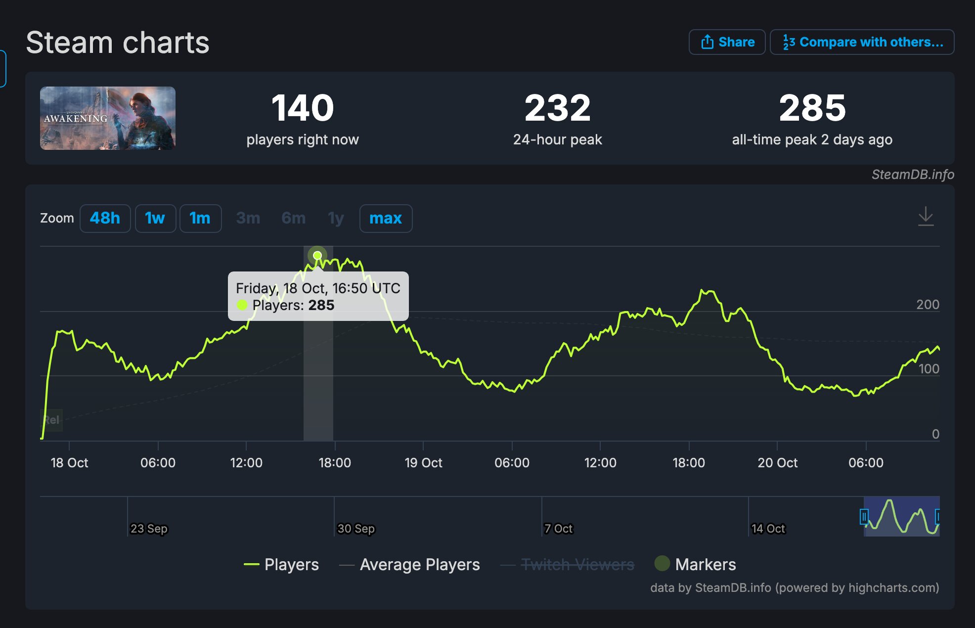 Unknown 9: Awakening вышла в релиз 18 октября и сразу же получила море негатива со стороны игроков — геймеры отмечают, что проект очень плохо работает, постоянно глючит или вылетает. А некоторые задания вовсе невозможно пройти, потому что главная героиня из-за каких-то проблем с физикой или текстурами не может забраться на преграду, чтобы пройти дальше. Всё это с волной критики в социальных сетях и довольно низкими оценками от критиков дало весьма ожидаемый результат — в пике тайтл собрал в Steam всего 285 игроков. Даже у Concord, который закрыли через две недели, в день запуска было 607 игроков в онлайне.