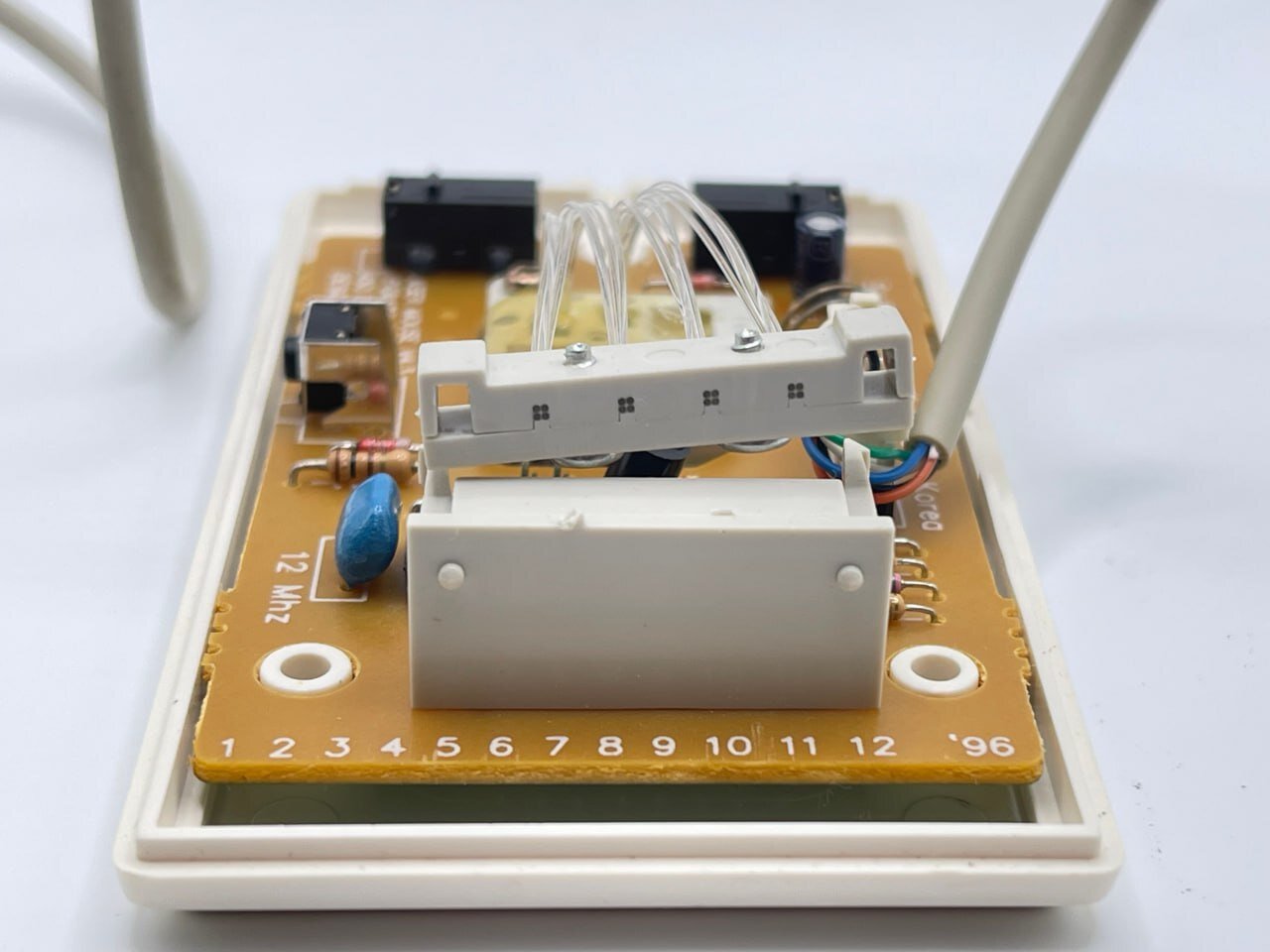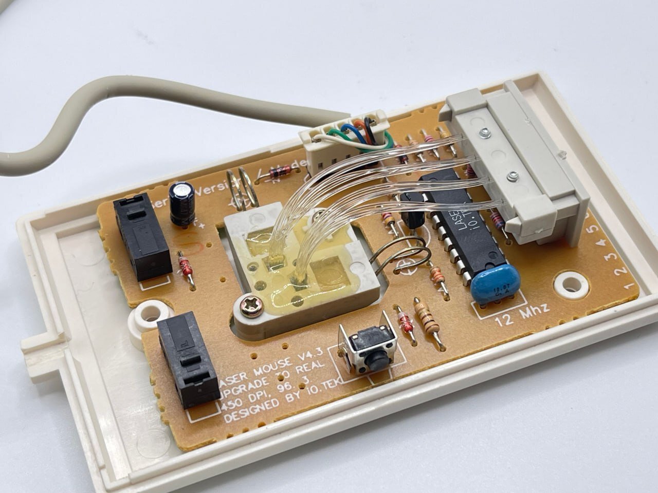 На первый взгляд это обычная мышка для COM-порта старенького компьютера, но она уже не имеет шарика, как многие мыши тех лет и не может работать без своего родного коврика, как современные оптические.
