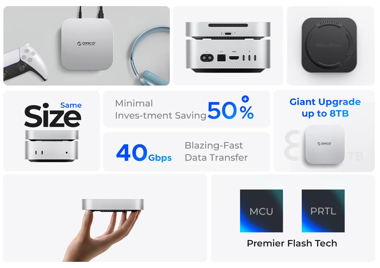 ORICO MiniMate — это не просто накопитель, а мощное дополнение для Mac mini, которое позволит вам работать быстрее, эффективнее и креативнее.