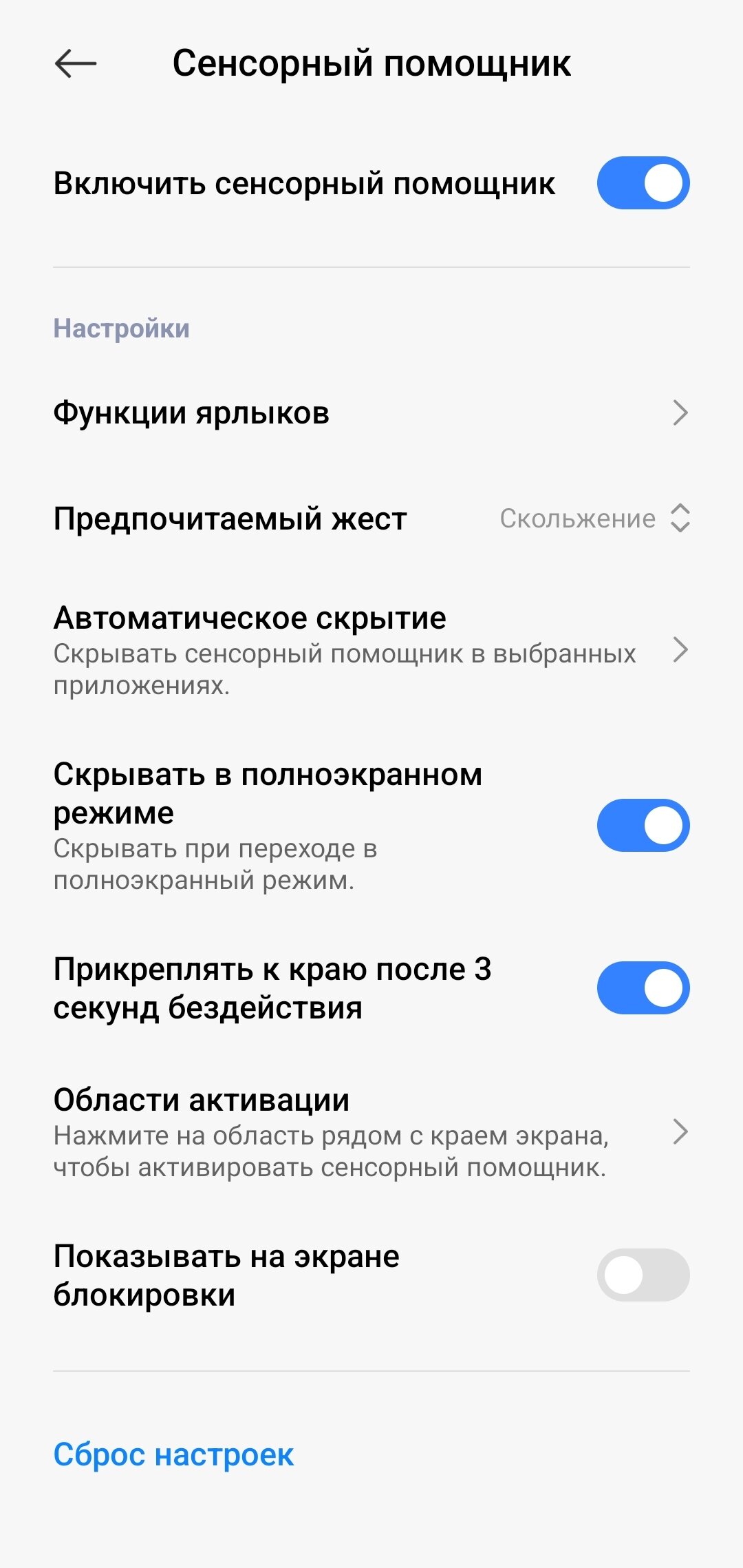 Для включения/выключения, настройки сенсорного помощника нужно перейти в: