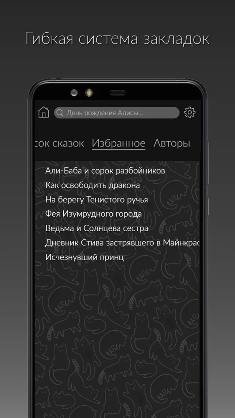 В приложении более тысячи сказок в аудиоформате. Сказки собраны в подборки по возрастным группам, тематике и жанрам. Так же в приложении есть список подкастов, таймер, поиск, закладки, темная тема (автоматически или по желанию)