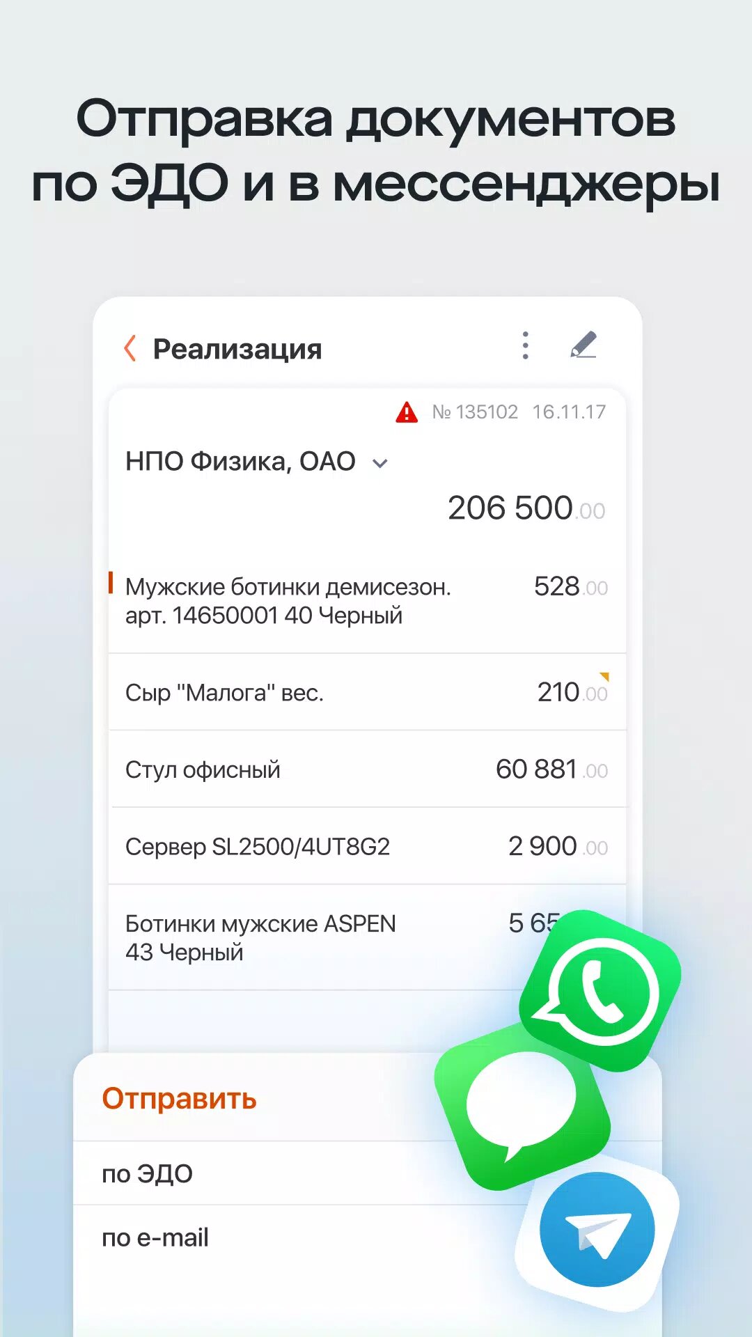Акты, счета-фактуры, накладные и другие типы — онлайн в 1 клик. - Отправляйте документы по ЭДО и в мессенджеры