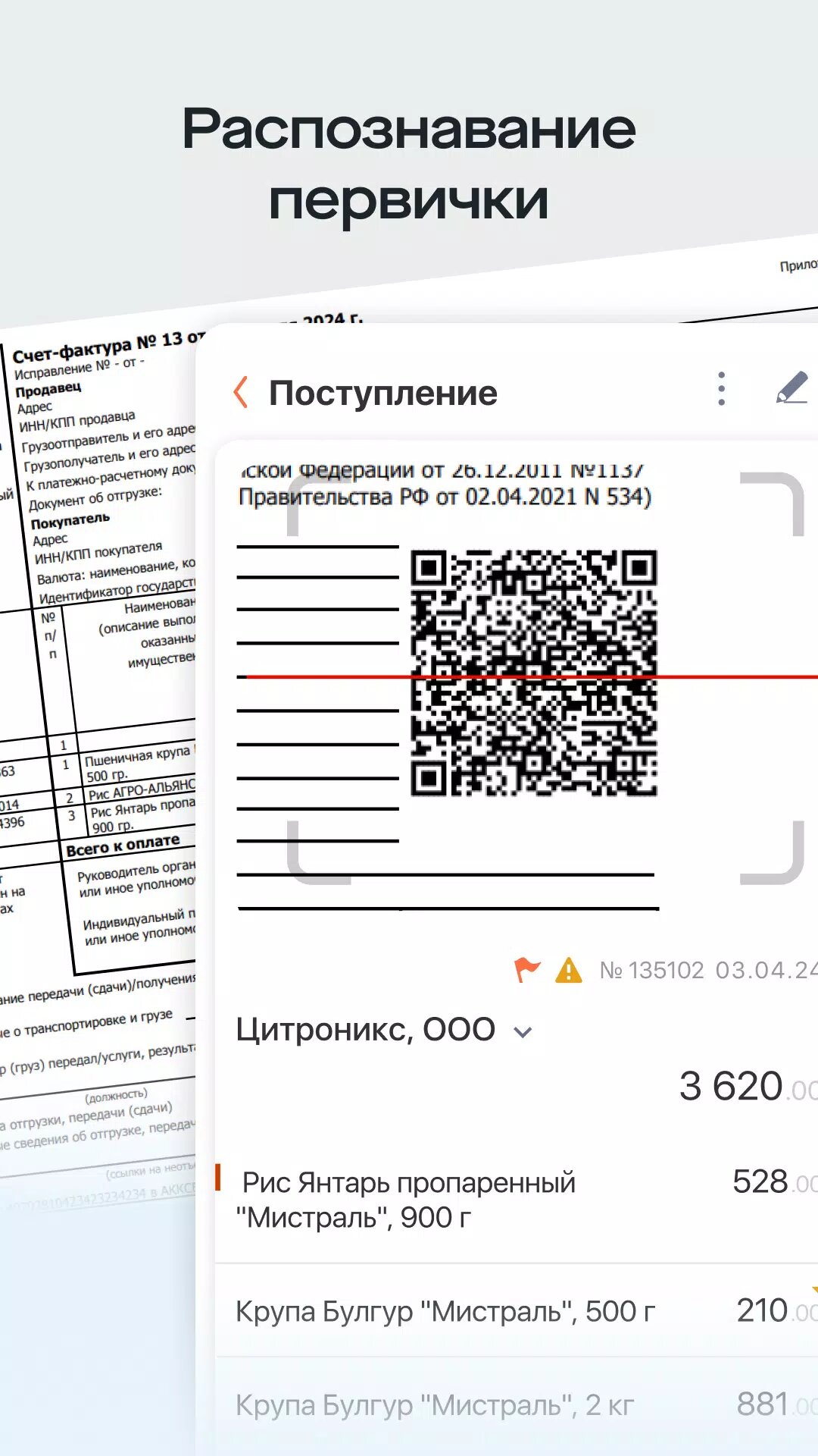 Сканируйте коды и утверждайте поступления.