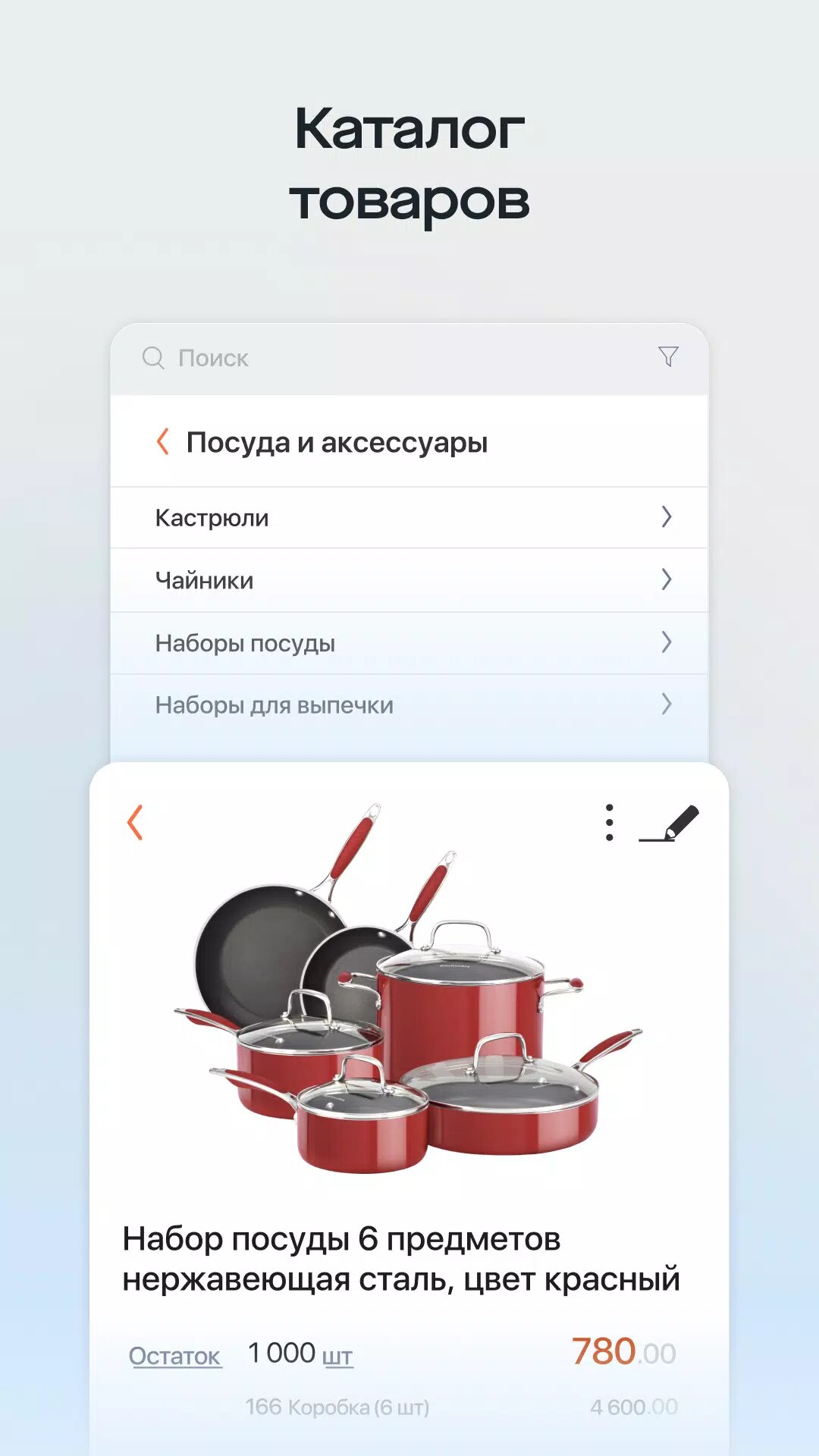 Быстро находите любую позицию и контролируйте остатки. - Ведите учет товаров с маркировкой