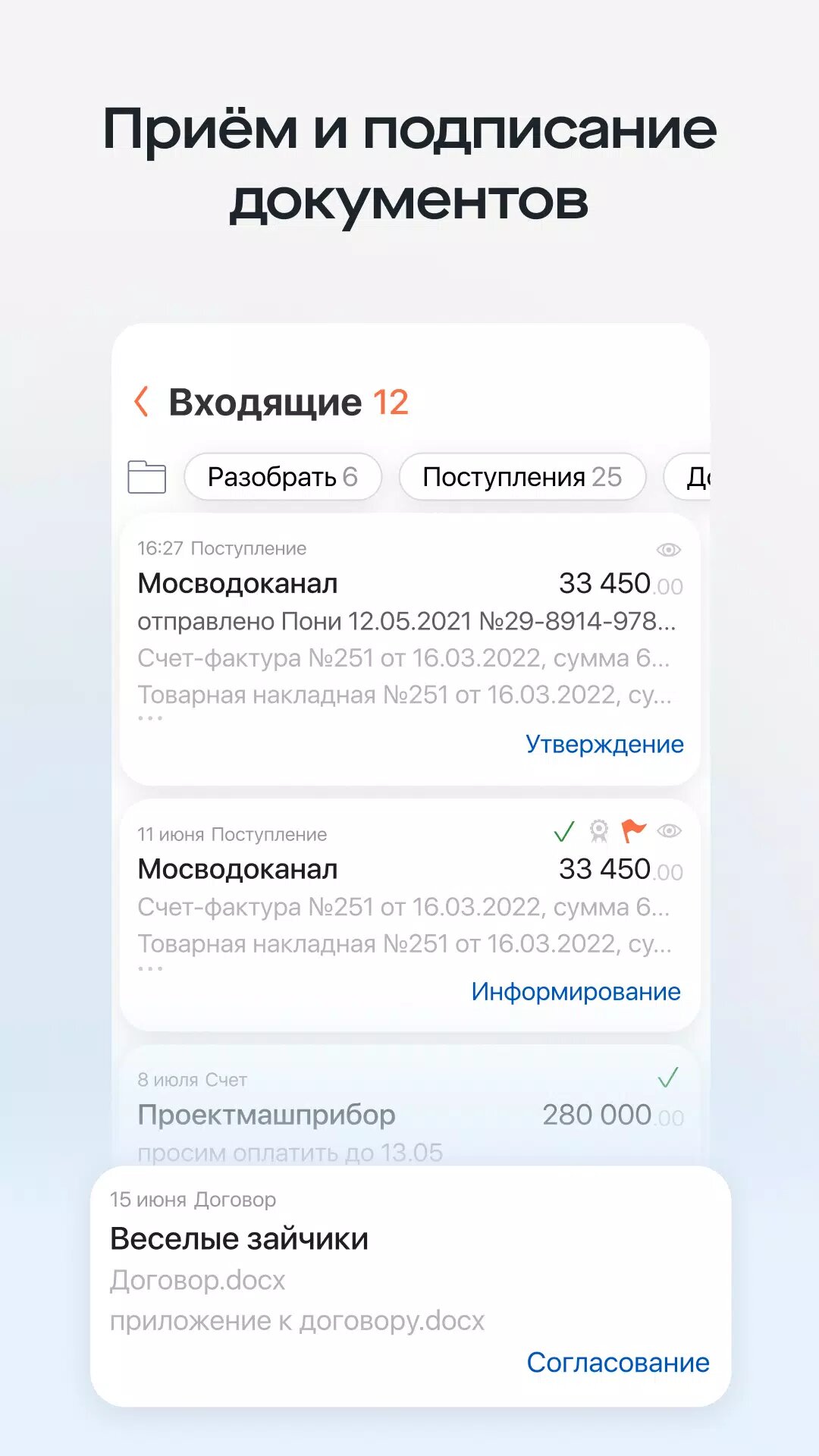 - Принимайте и подписывайте документы