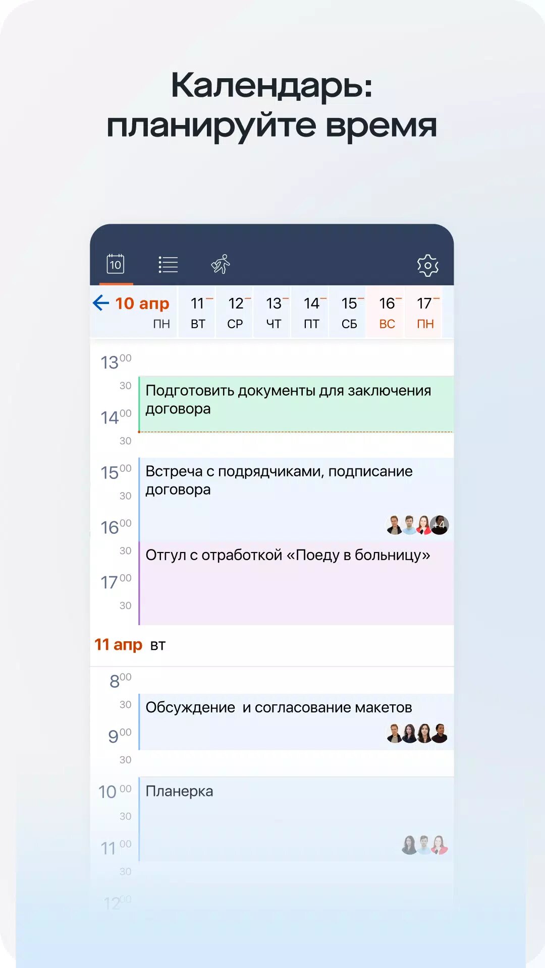 - Рабочий календарь — планируйте свое время.