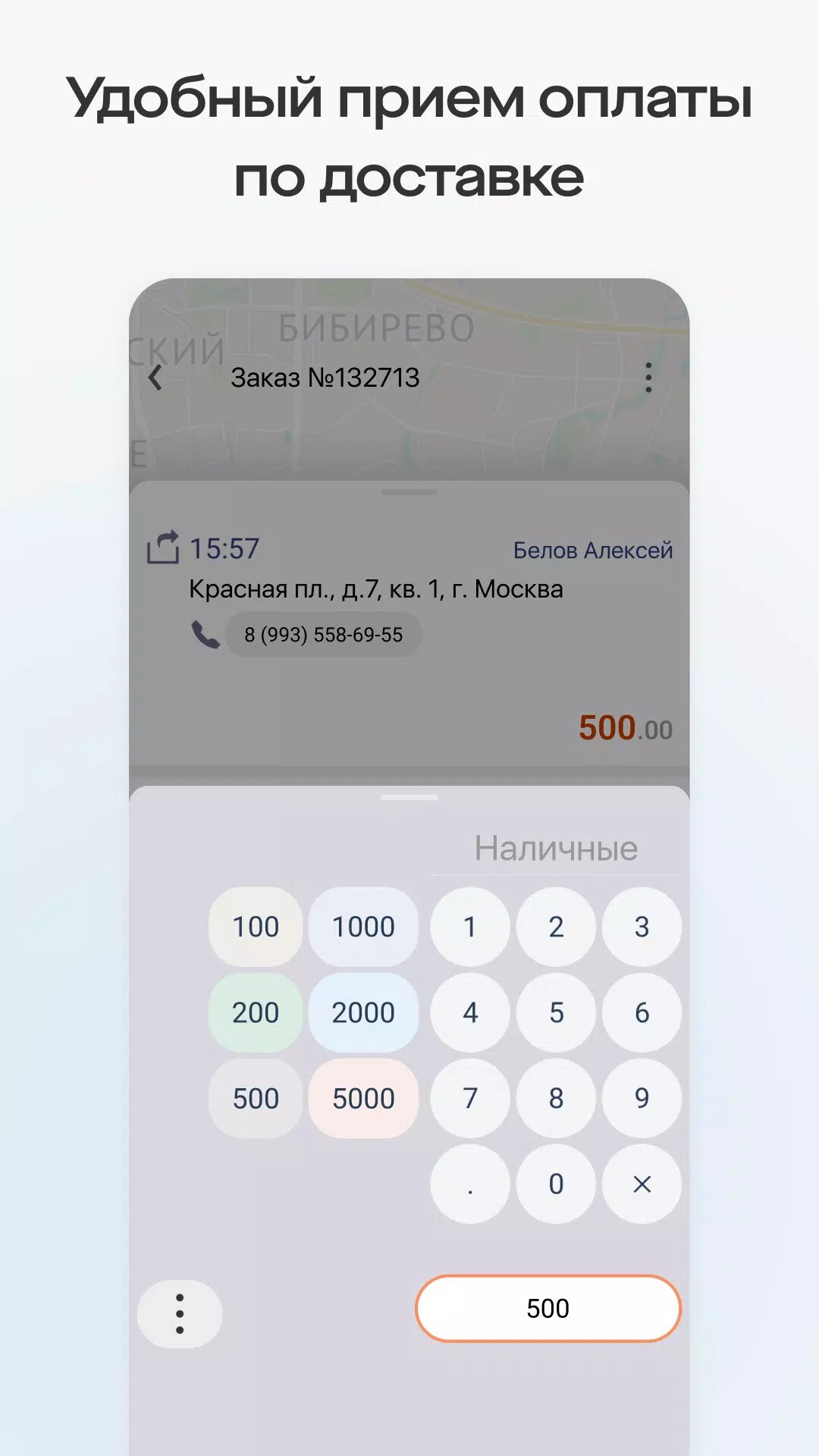 - Получайте заказы по доставке, стройте маршрут до клиента, принимайте оплату прямо с телефона.