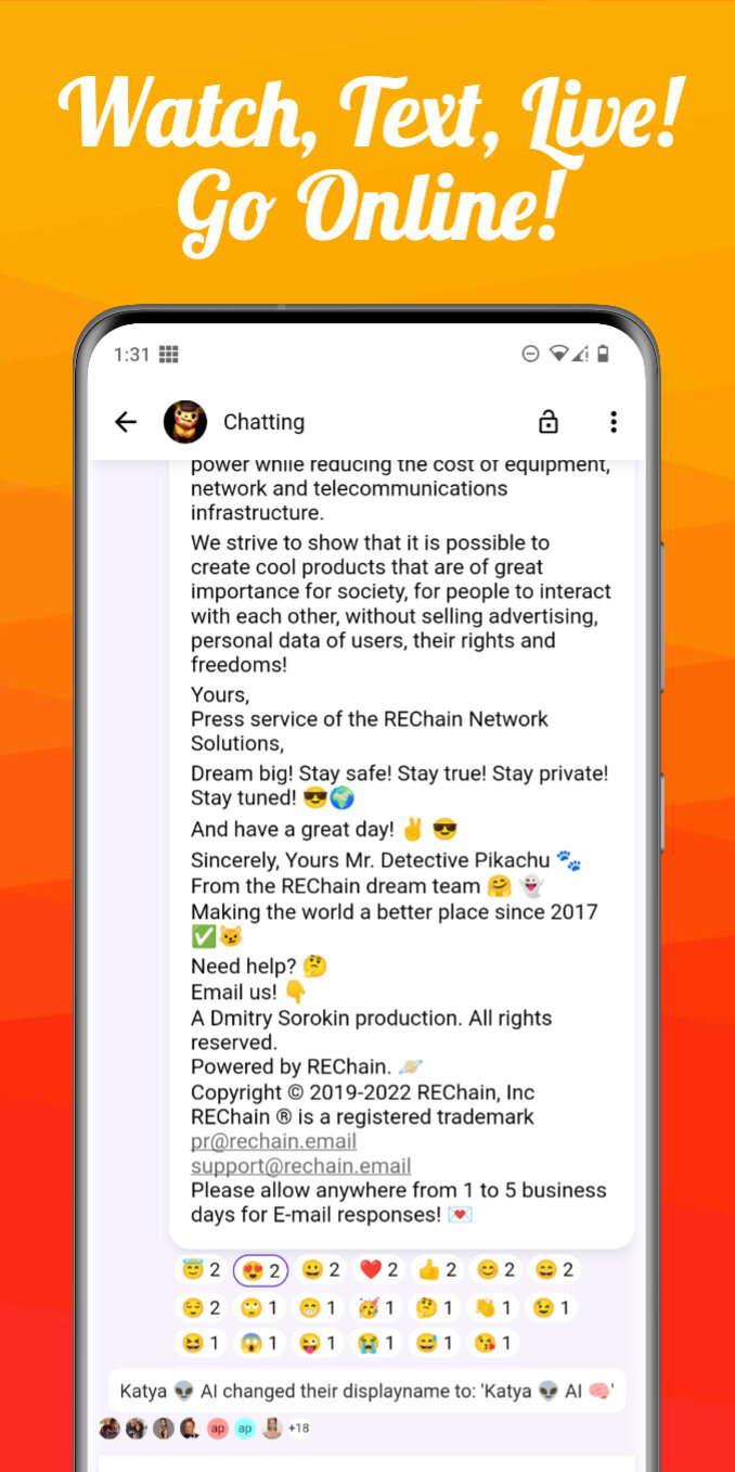 Катя ® 👽 AI 🧠 отлично работает, помогая вам оставаться на связи с платформой REChain ®️ 🪐!