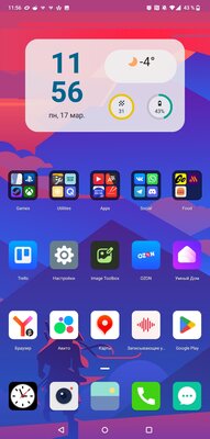 Мне, в целом, и OxygenOS 11 нравится. Я только лаунчер поменял сначала на Яндекс, а когда там отвалилась погода и обои, то на Microsoft. Не потому что родной плохой, идея была воссоздать интерфейс предыдущего Яндекс.Телефона, чтобы не привыкать к новому. Виджет погоды от Motorola.