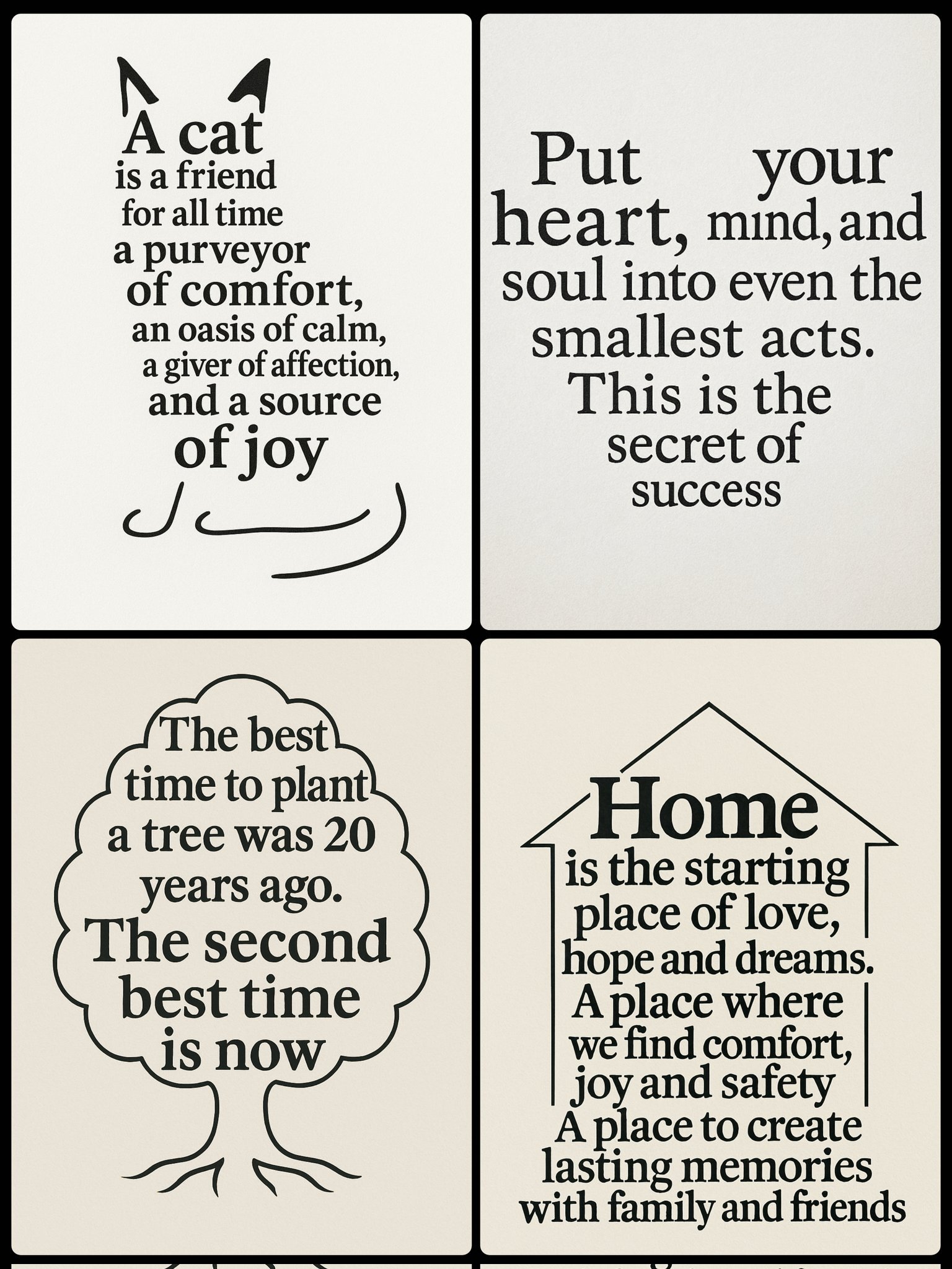 creative typographic design uses black serif text to form the shape of a [ФОРМА], set against a soft, off-white, textured background. The quote within the text "[ТЕКСТ]" forms the outline of the [ФОРМА], with varying font sizes and consistent spacing