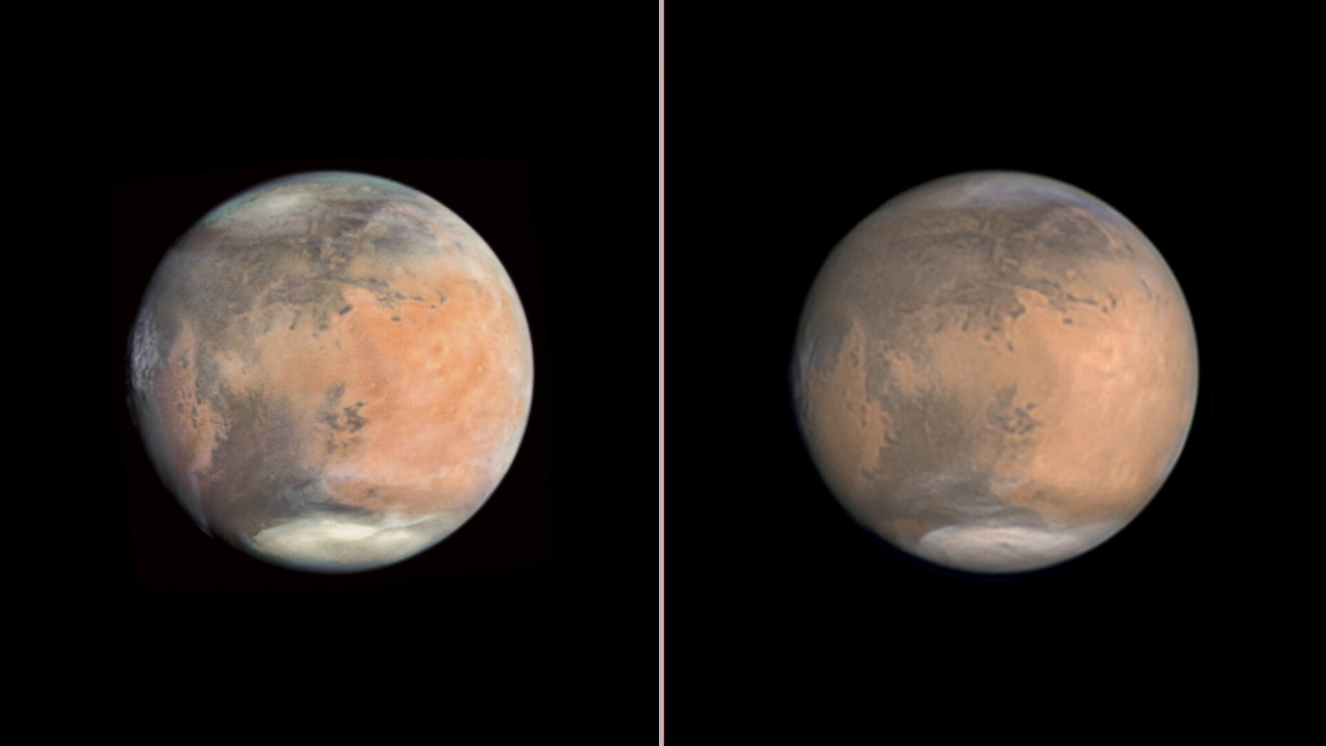 Британский астроном-любитель Том Уилкинс (Tom Williams) наблюдает за космосом несколько лет с помощью обычного телескопа, установленного на заднем дворе его дома. За это время он сделал много потрясающих снимков, некоторые из них практически не уступают изображениям, полученным орбитальными телескопами. Вот наглядное сравнение Марса, снятого с помощью «Хаббла» (слева) и 24-дюймового телескопа (справа).
