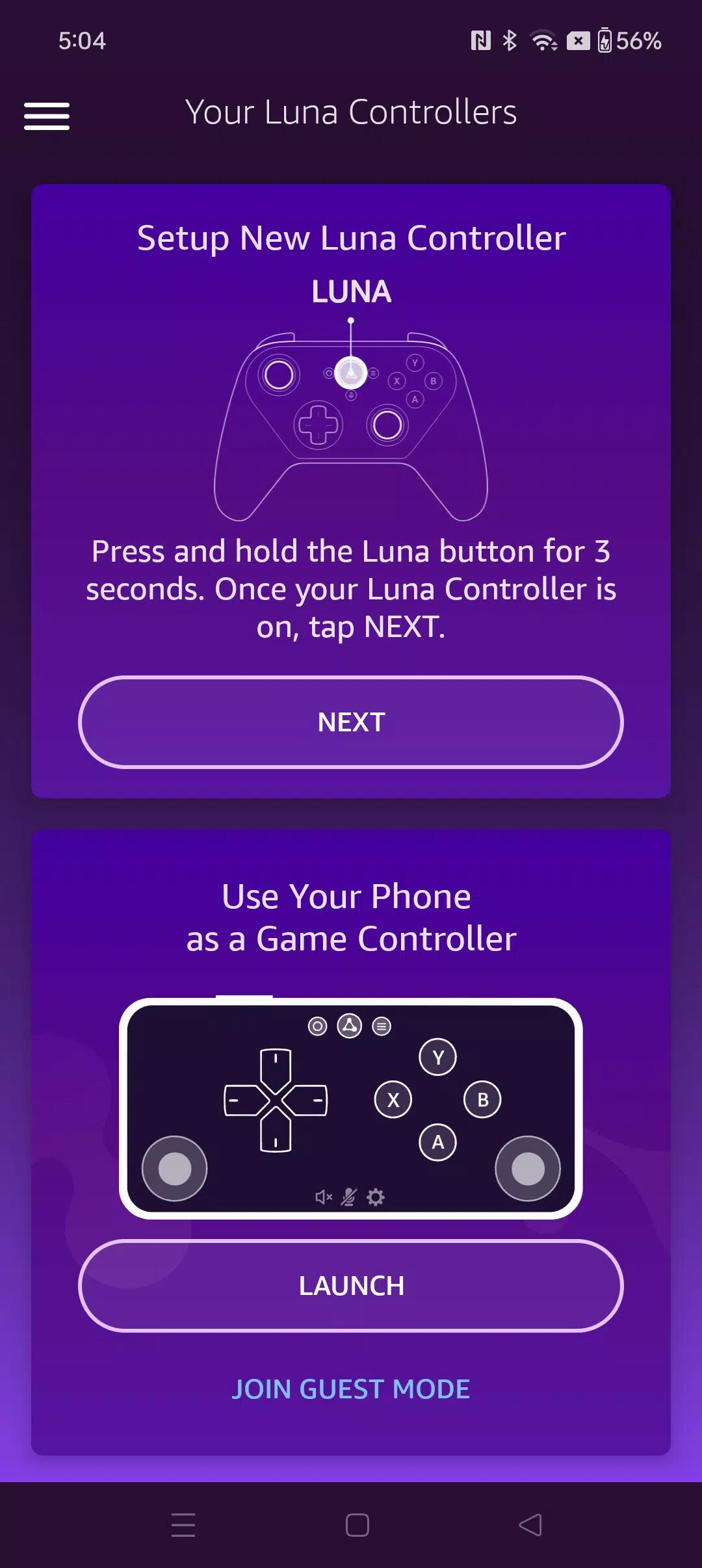 - Откройте приложение Luna Controller на своем мобильном устройстве.