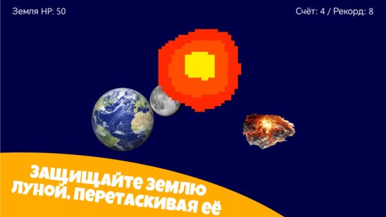 В Cosmic danger вам предстоит защищать планету Земля луной, перетаскивая её. Со всех сторон на Землю летят метеориты. Подставьте луну на их пути и метеориты разрушатся. Побивайте свои рекорды, покупайте новые скины в магазине, играйте где угодно и когда угодно. Чтобы не проигрывать сразу, прокачивайте HP Земли в магазине. Благодаря тому, что игра не использует подключение к интернету вы можете играть где угодно, да хоть в бункере или на Эвересте! Попробуйте посоревноваться между друзьями, кто уничтожит больше всего метеоритов. Если вы нашли баги, пишите на почту xsyndagames@gmail.com или в телеграм @itsXsynda Игра создана на конструкторе игр CCode, b1327