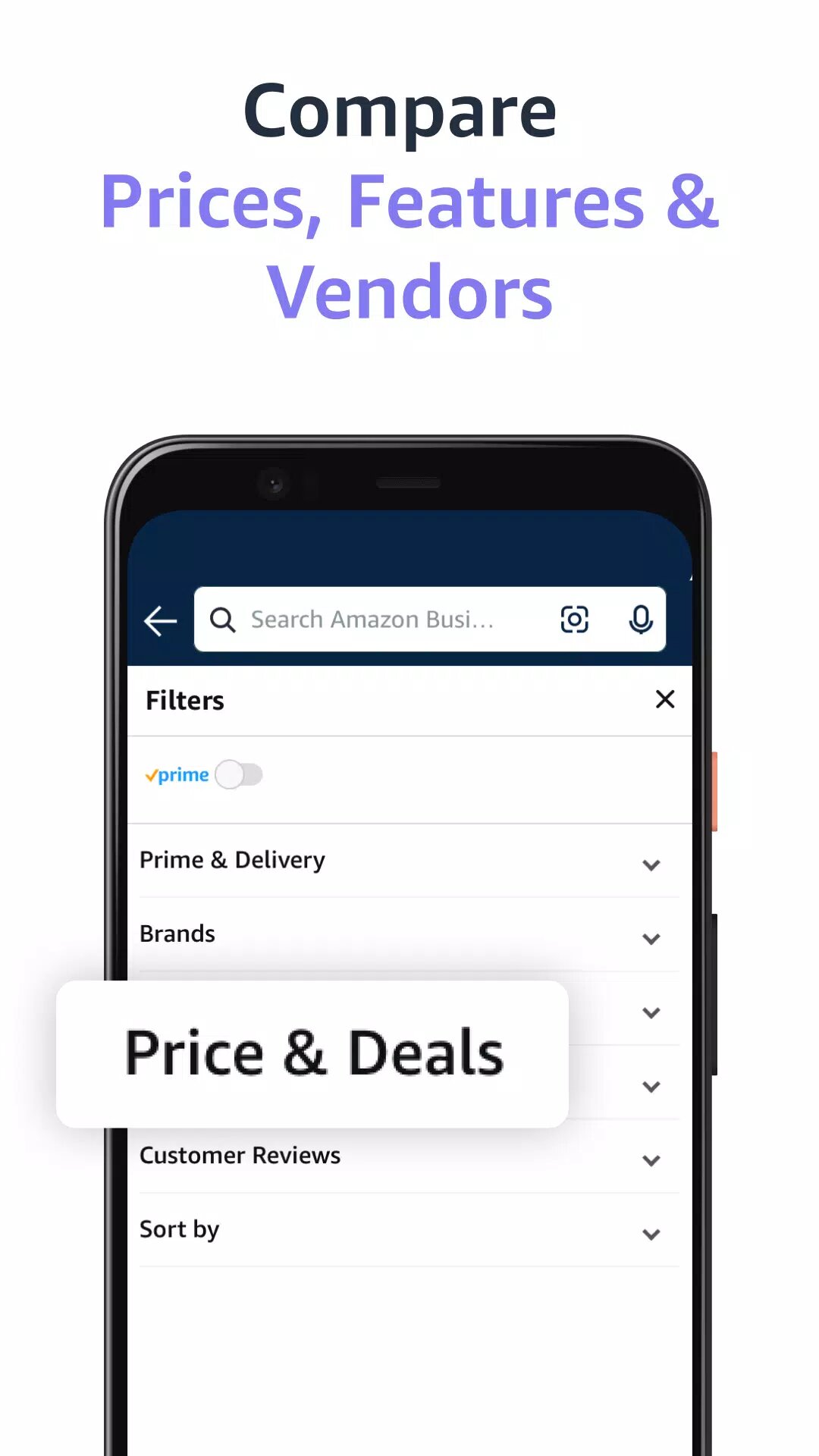 — Войдите в мобильное приложение Amazon Business, используя свою учетную запись Amazon Business Prime, чтобы получить доступ к мощным инструментам и информационным панелям управления расходами, а также к управляемым покупкам, которые позволяют вам создавать политики, чтобы отдавать предпочтение или блокировать типы продуктов, которые могут покупать ваши команды.