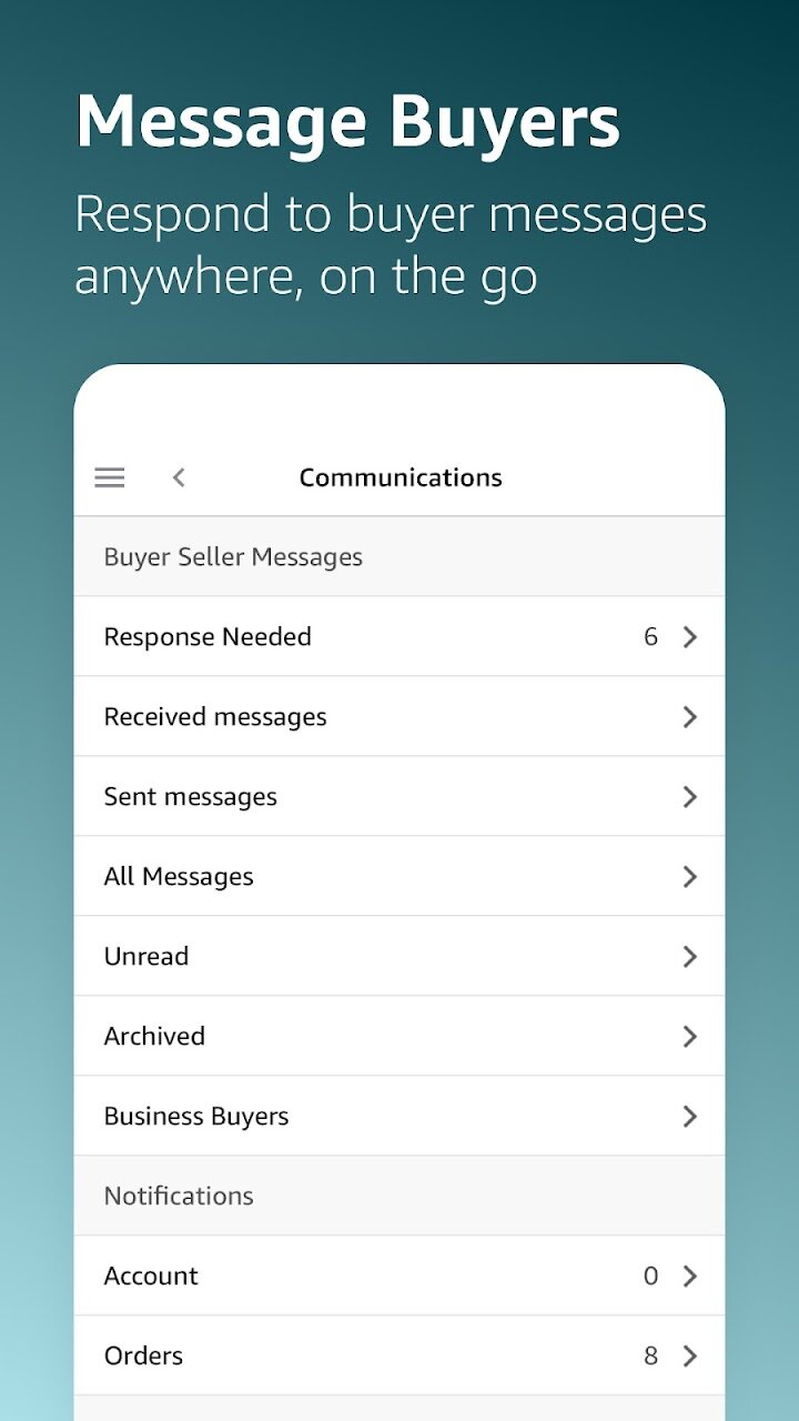 - Есть вопрос о продаже на Amazon? Используйте приложение, чтобы связаться со службой поддержки продавцов.