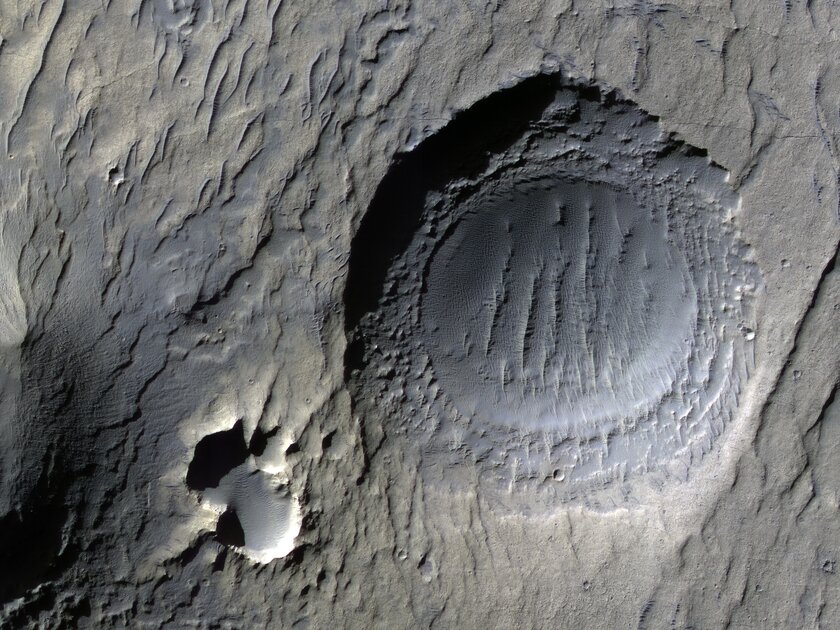 Это не иллюзия. На Марсе есть выпуклые ударные кратеры, иногда их называют перевёрнутыми