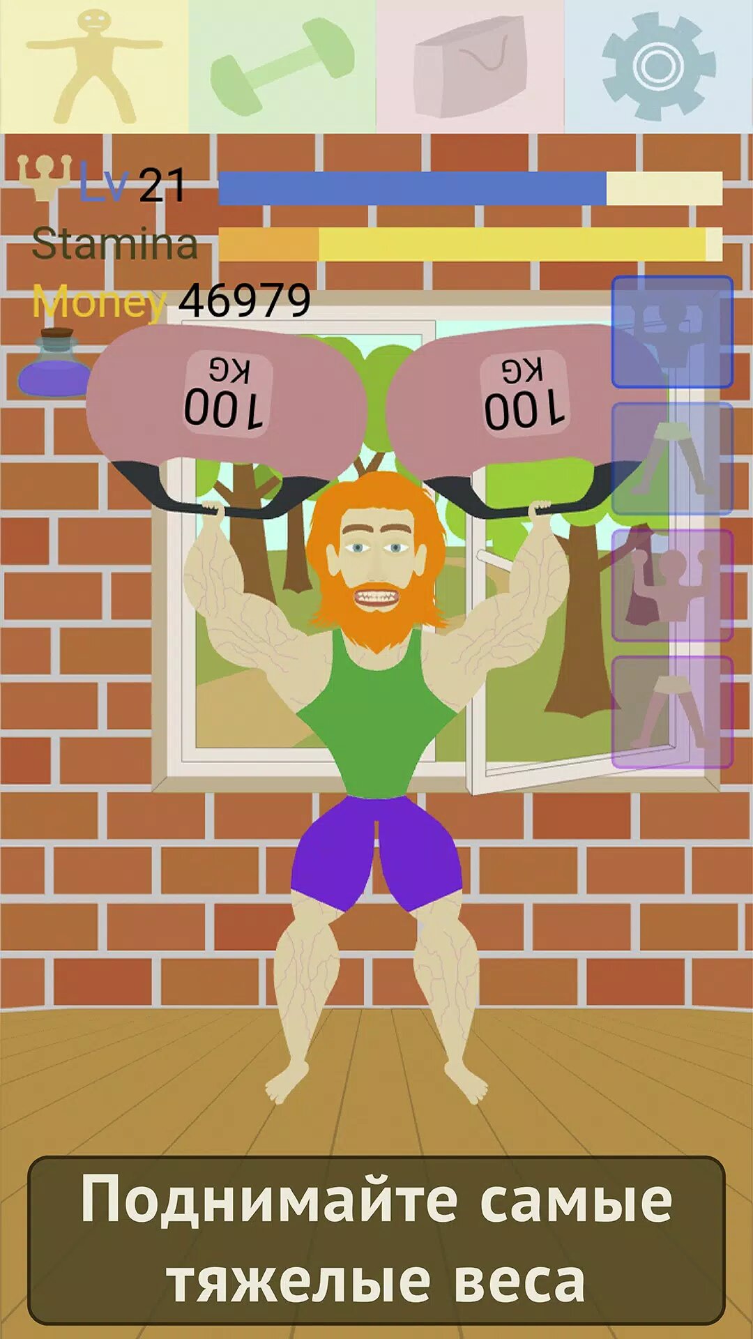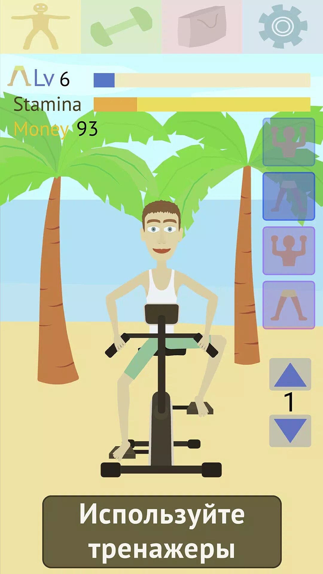 В этой игре вам нужно тренироваться и учавствовать в соревнованиях, чтобы зарабатывать деньги и прокачивать своего персонажа. Но это непросто, так как ваша выносливость истощается, когда вы постоянно тренируетесь. Затем, когда у вас будет достаточно средств, вы сможете купить дополнительное оборудование, которое поможет вам набрать мышечную массу, деньги и опыт. По мере того, как вы получаете больше опыта, вы также можете увеличить свою силу и выносливость.