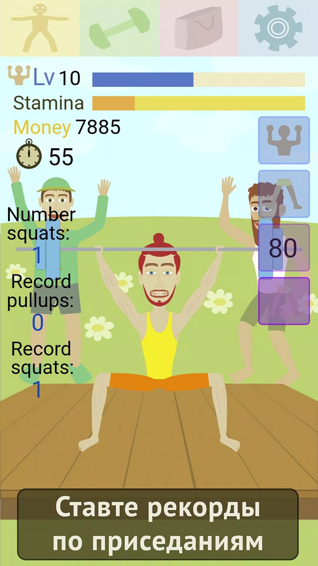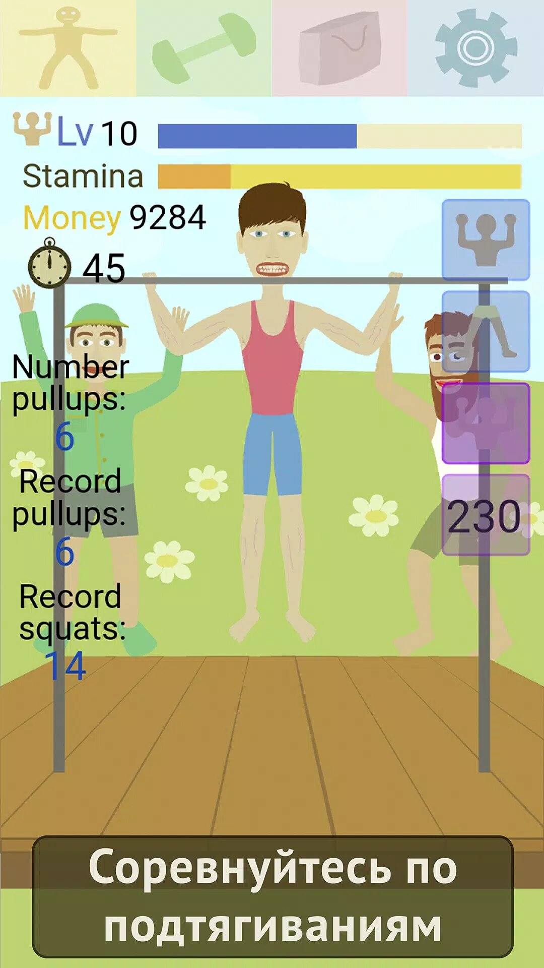 - Заработок на тренировках и соревнованиях. Вы зарабатываете деньги поднимая гантели и тренируясь на велотренажерах. Получайте дополнительный доход устанавливая новые рекорды на соревнованиях по подтягиваниям и приседаниям.