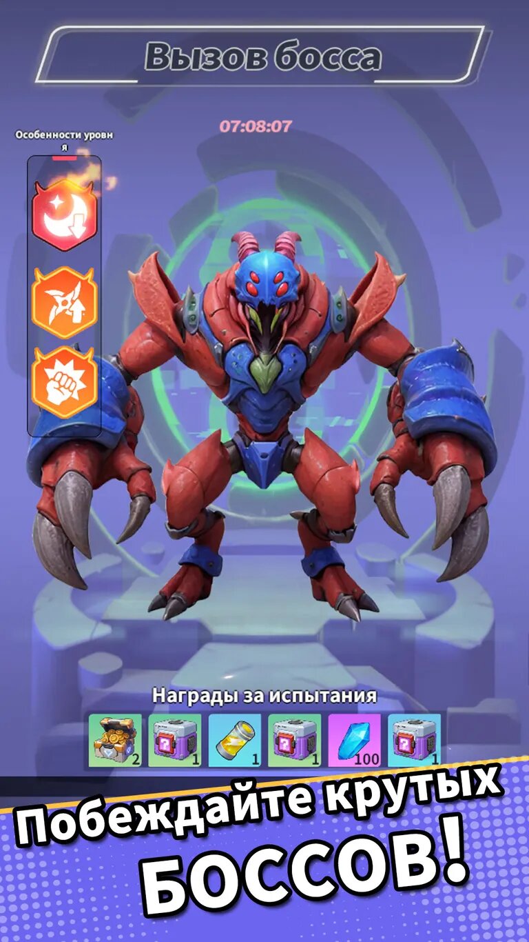 - Разнообразие режимов вызовов: Сражайтесь с мощными боссами различных форм, встречающими вас новыми тактическими испытаниями.