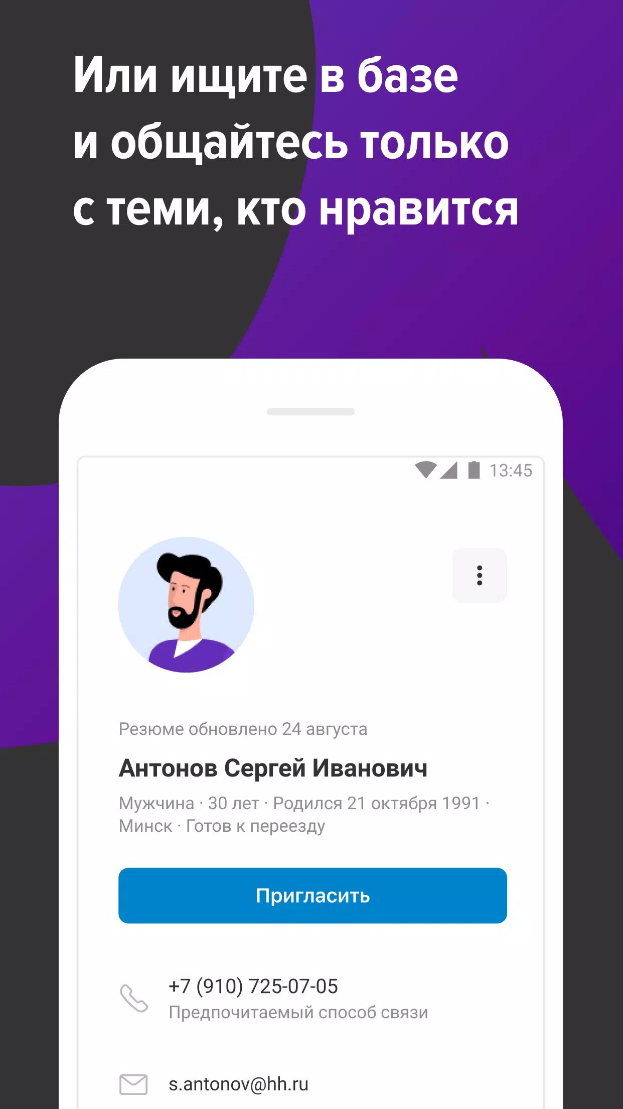 - Совершать самостоятельно поиск по всей базе: расширенный поиск по вашим параметрам позволит найти именно того, кто требуется на открытую позицию;