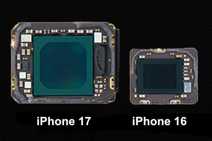 Сравнение сенсоров фронтальной камеры в iPhone 17 и 16 — в новинке он стал и больше, и квадратнее