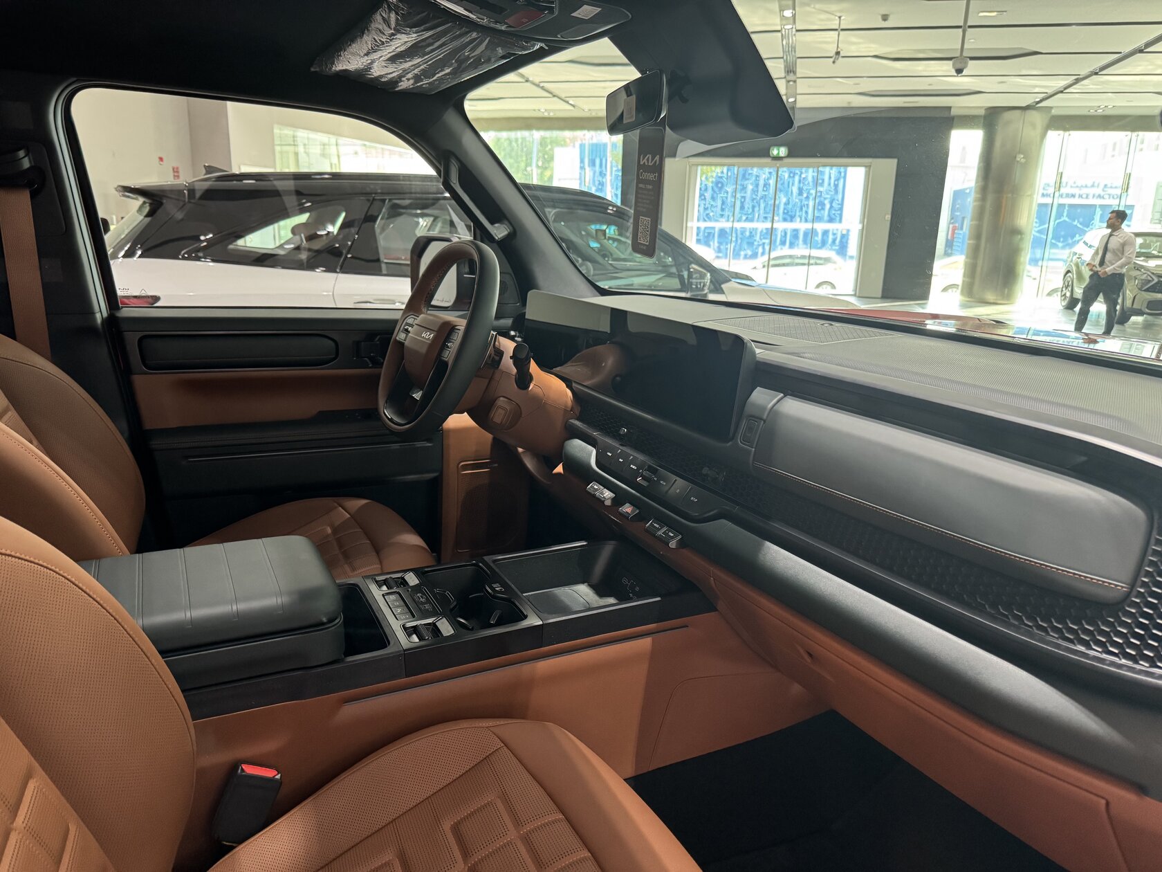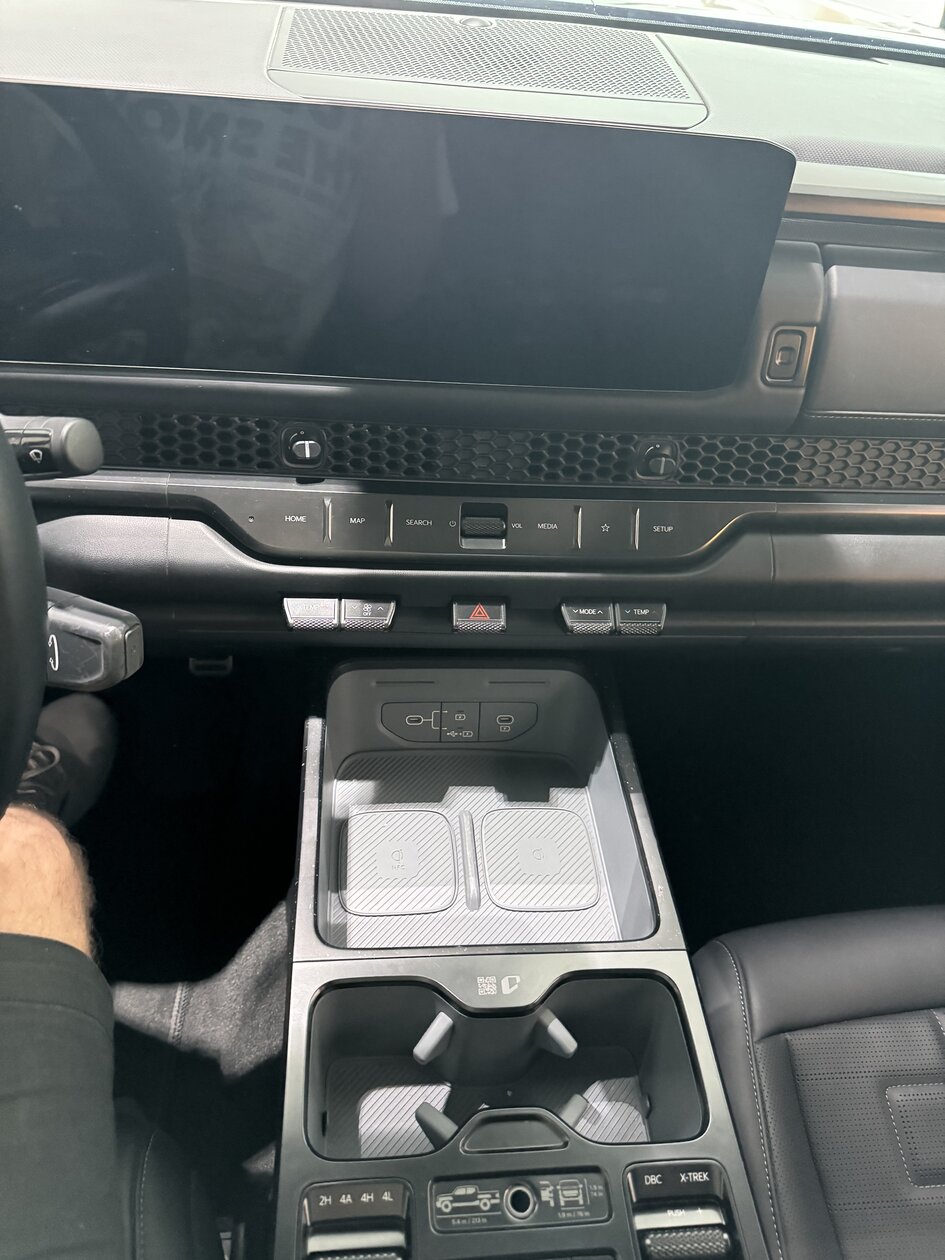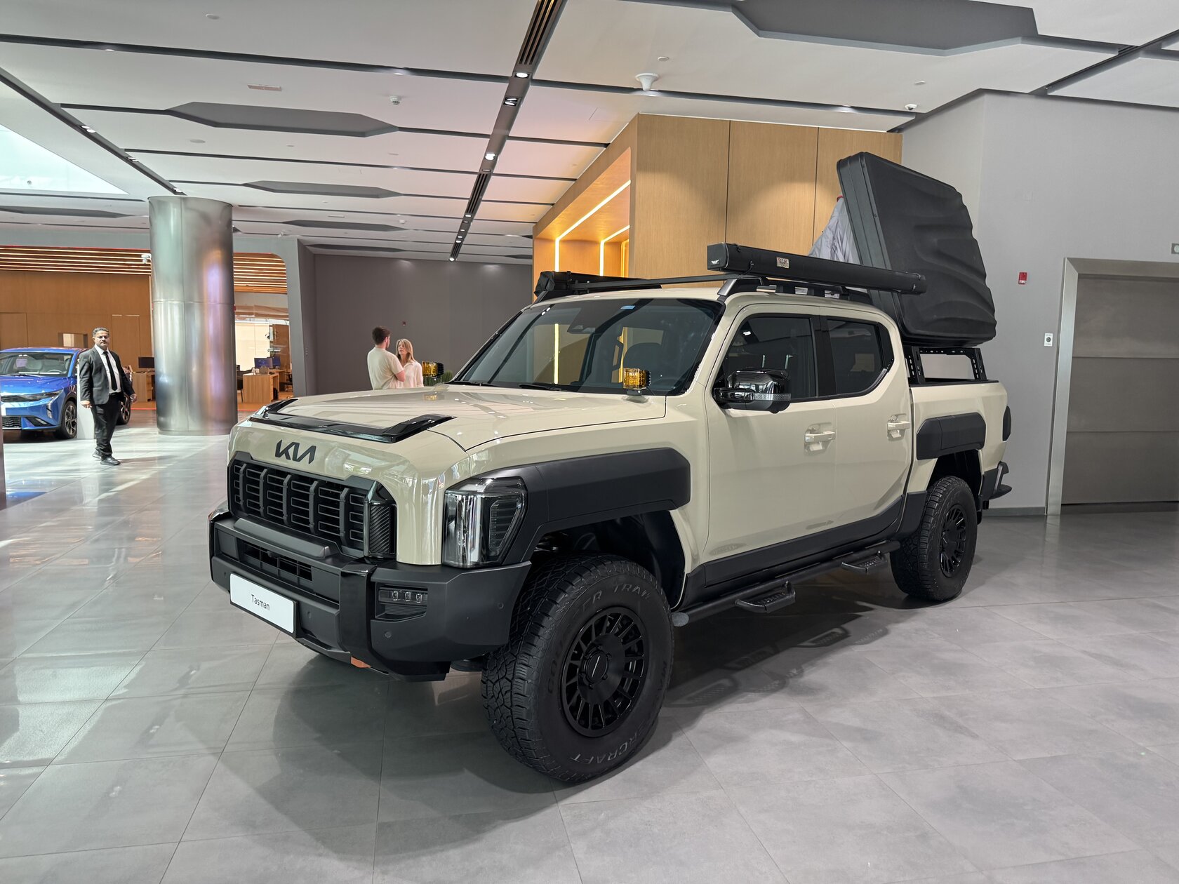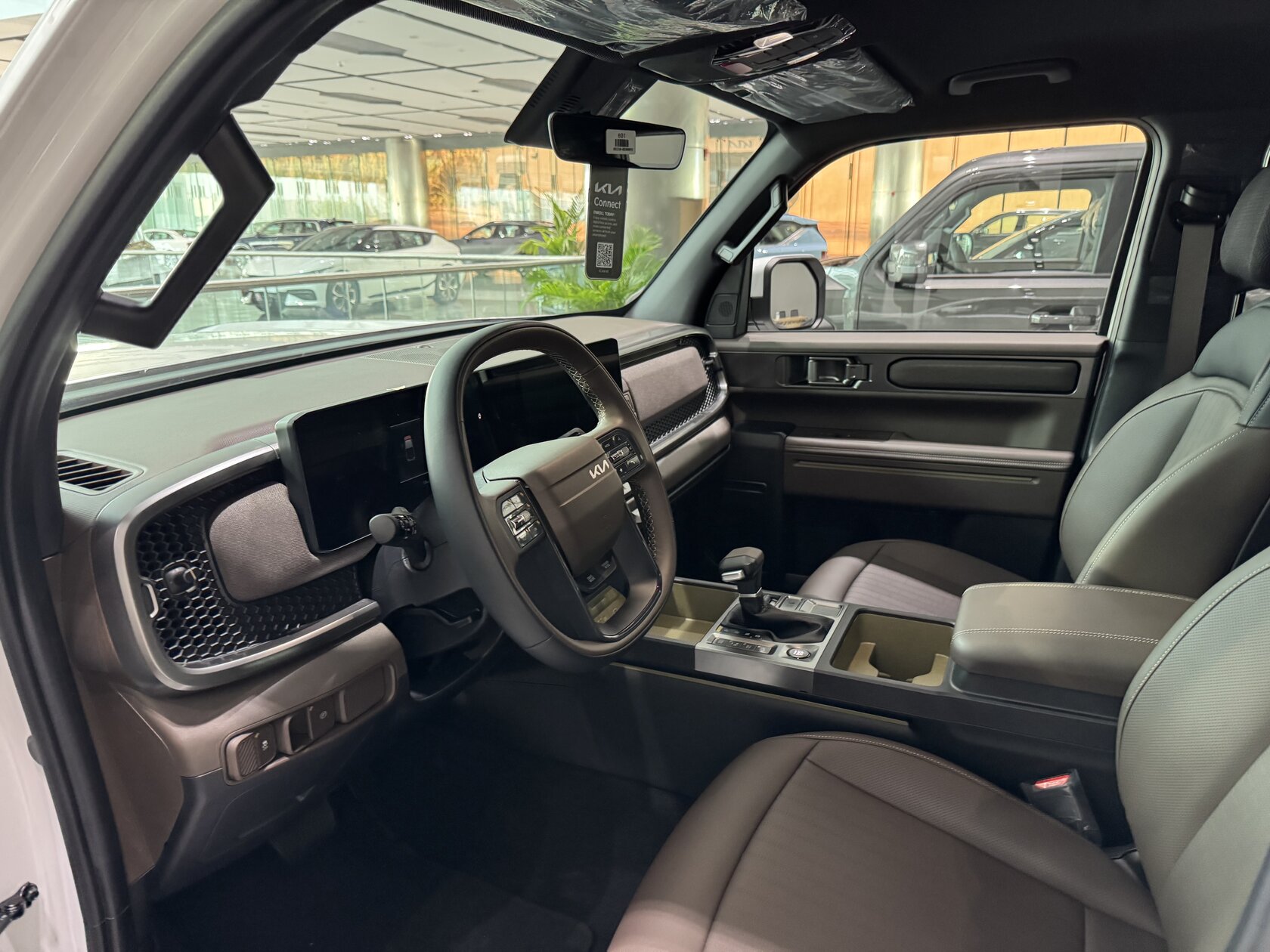 В зависимости от того, какую версию вы выберете, будет достаточно сильно отличаться центральная консоль. В топовой X-PRO под рулем будет толстенный селектор как у того же EV9, который еще и умеет проворачиваться как старые Нокии. Помимо этого, будет 2 беспородных зарядки, а блок с управлением полным приводом еще и будет украшен забавной пиктограммой с изображением машины и ее габаритов. Измерения, кстати, еще и продублированы в имперской системе. А еще в такой версии бардачок между сиденьями будет с хитрой крышкой, которую можно разложить в некое подобие стола. Там и бургеры поместятся, и картошку сложить есть куда. Помнится, что-то похожее есть и у свежих Фордов Ф-серии. И после всего этого Киа будет говорить, что не собирается выводить машину на североамериканский рынок, на котором сейчас бум таких «небольших» (естественно, по американским меркам) пикапов? Ну-ну. Сейчас как раз пройдет бум интереса к новой Такоме, а там и Тасман 2026 MY выйдет. Азиатский Ford Ranger ведь снова вышел на лакомый американский рынок.