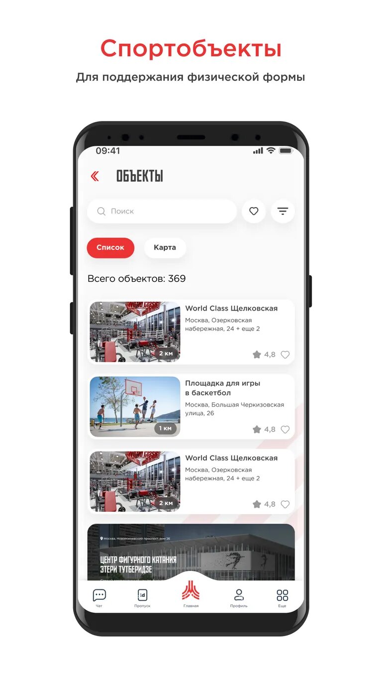 - Откройте для себя лучшие спортивные объекты и площадки: выбирайте подходящие для вас места для занятий спортом, будь то спортивные комплексы, стадионы, бассейны или парки.