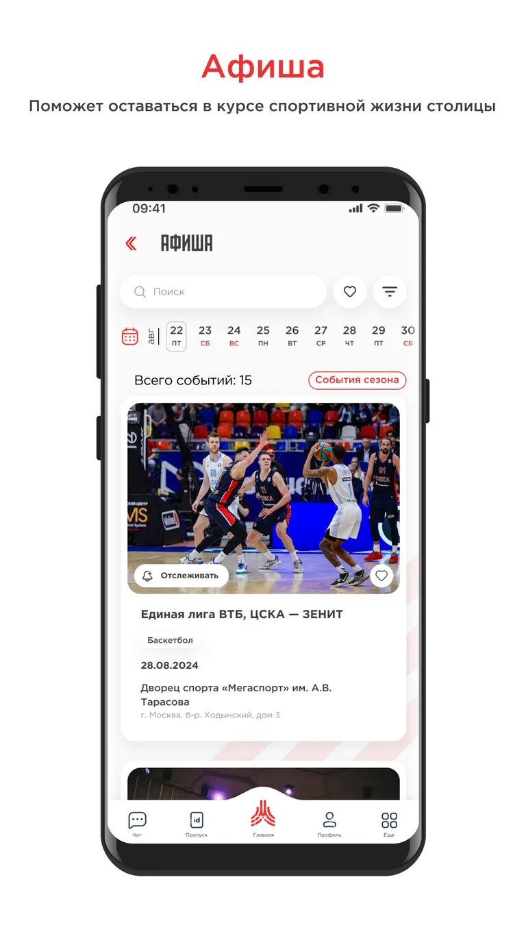 - Участвуйте в спортивных мероприятиях: находите и записывайтесь на самые интересные события, соревнования и мероприятия в Москве.