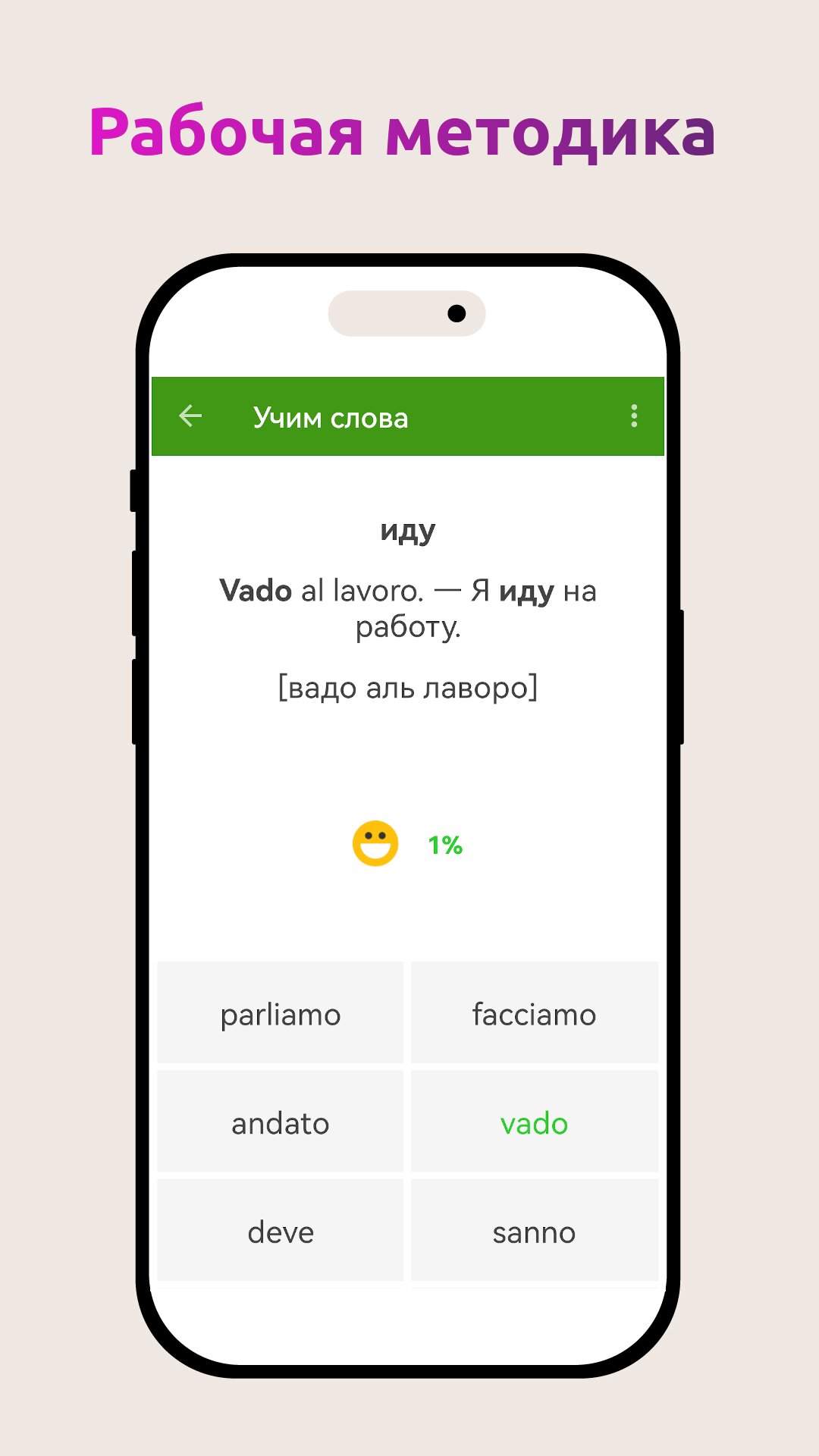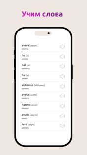 «Учим слова» — запоминание итальянских слов, фразы контекста помогают лучше запомнить новое слово.