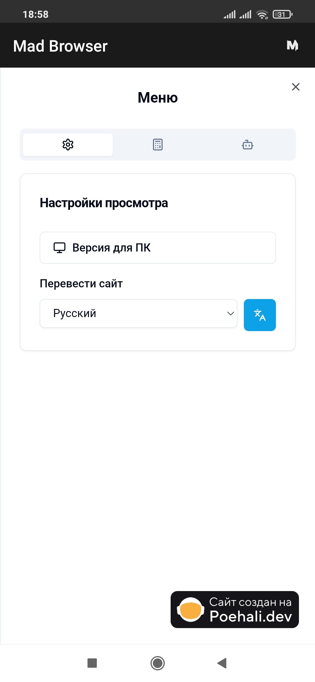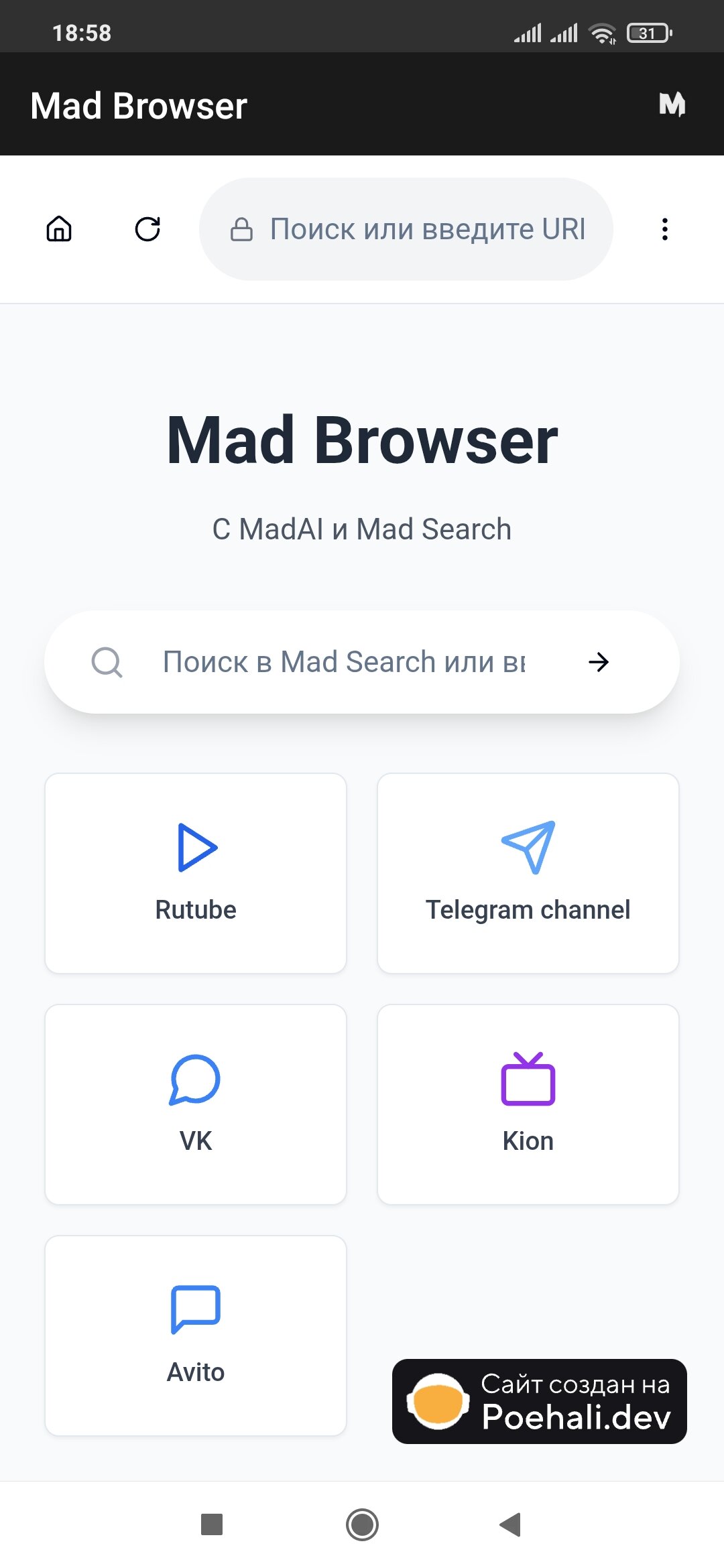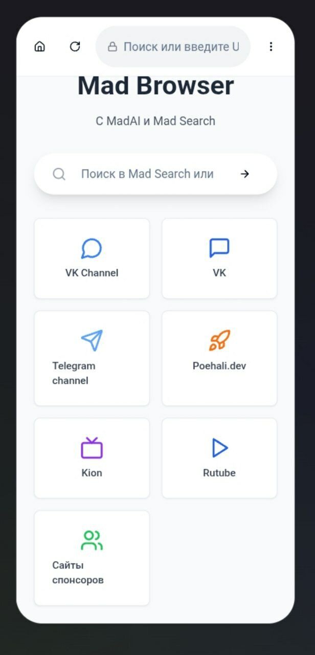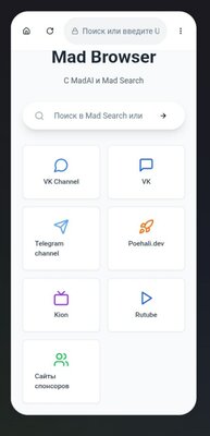Mad Browser использует кастомный ИИ под названием «MadAI», система поиска «Mad Search».