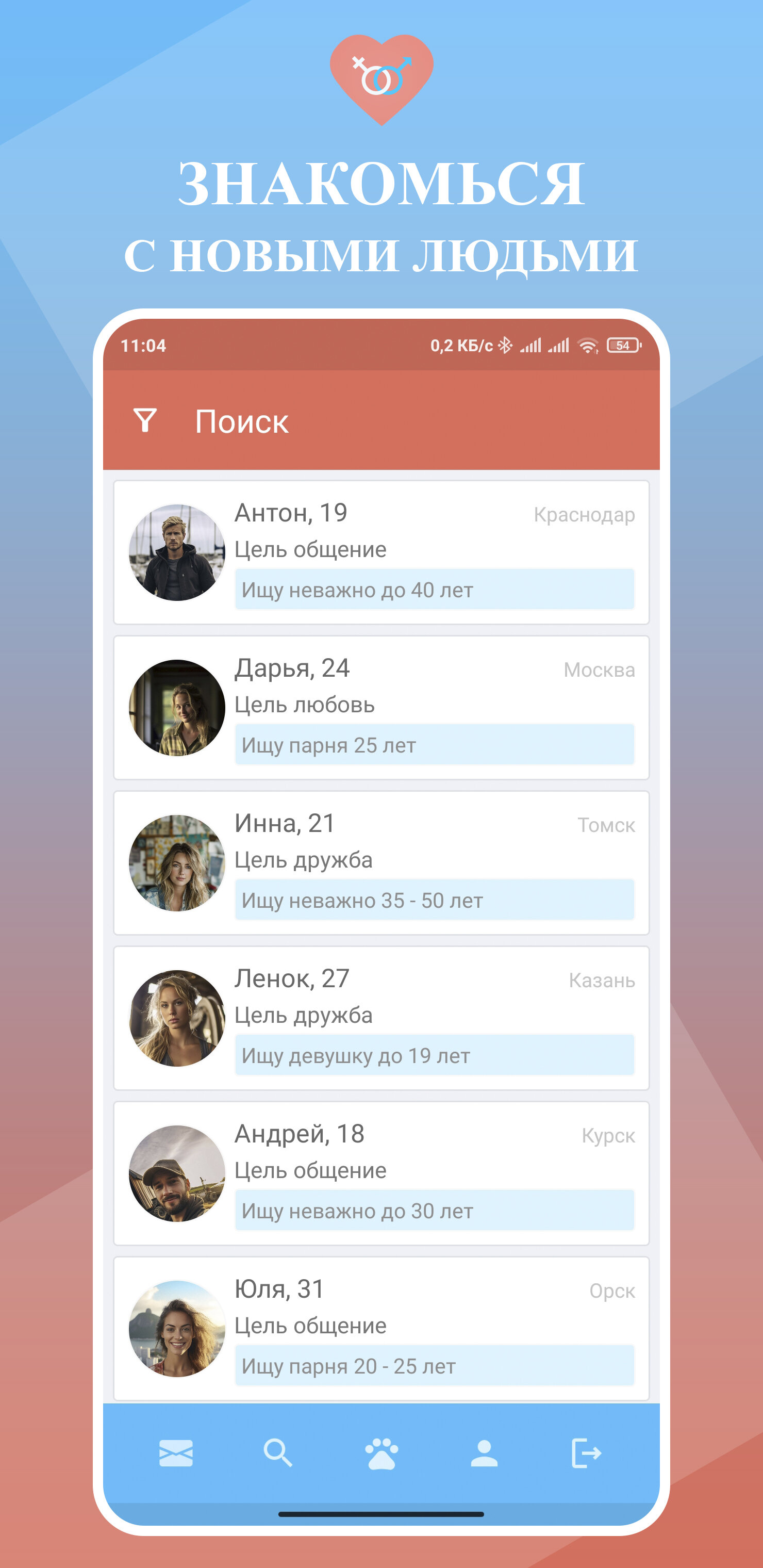 Знакомствами онлайн сейчас никого не удивишь, мы уверены, что за поиск новых знакомств платить не нужно, поэтому наше приложение абсолютно бесплатное.