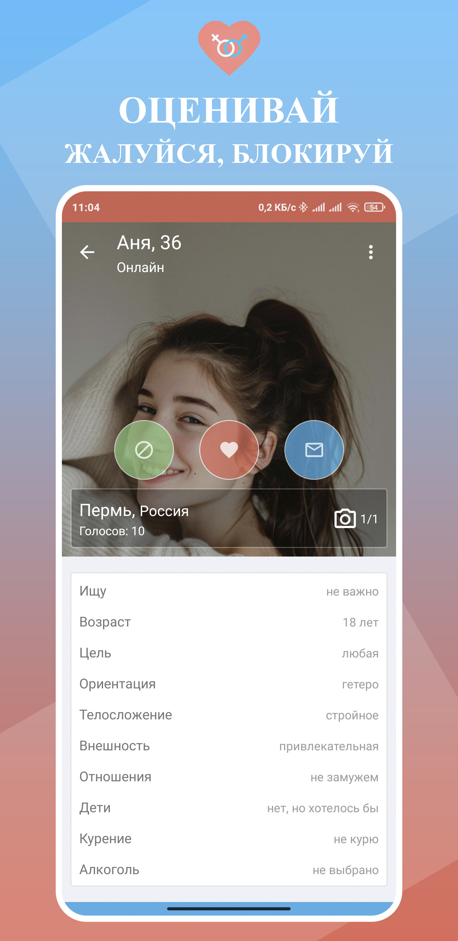 Мы следим за качеством анкет. В нашем приложении практически нет ботов и фейковых анкет, так как подозрительная активность отслеживается и блокируется модераторами.