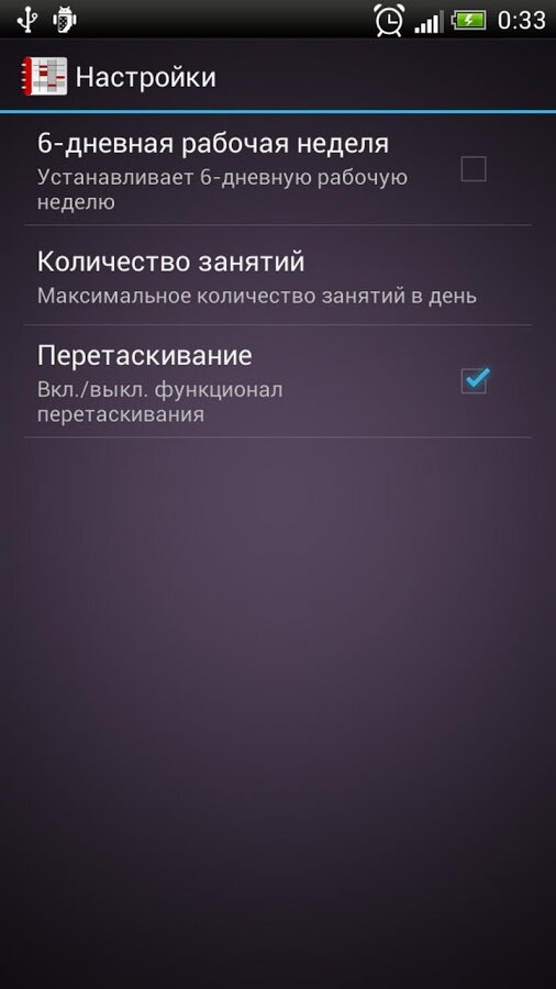 Виджет приложения всегда будет показывать данные о занятиях (название предмета, преподаватель, аудитория) на текущий день. Вам достаточно будет одного взгляда, чтобы знать, какие предметы сегодня.