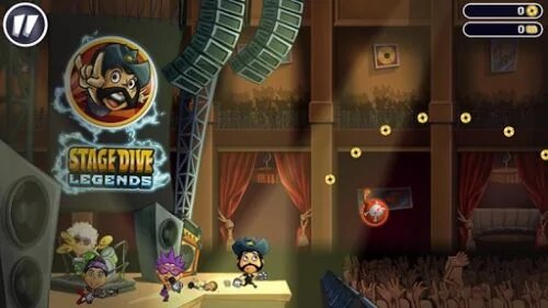 Stage Dive Legends – это супербыстрая игра-раннер, которая дарит море возбуждения и веселья. Играй под хардроковые композиции, отправляйся за кулисы, улучшай свою любимую рок-звезду и найди самый лучший способ побить рекорды! Исследуй огромной количество миссий в гонке по городам по всему земному шару. Докажи, на что ты способен, и стань настоящей легендой прыжков со сцены! За дело!
