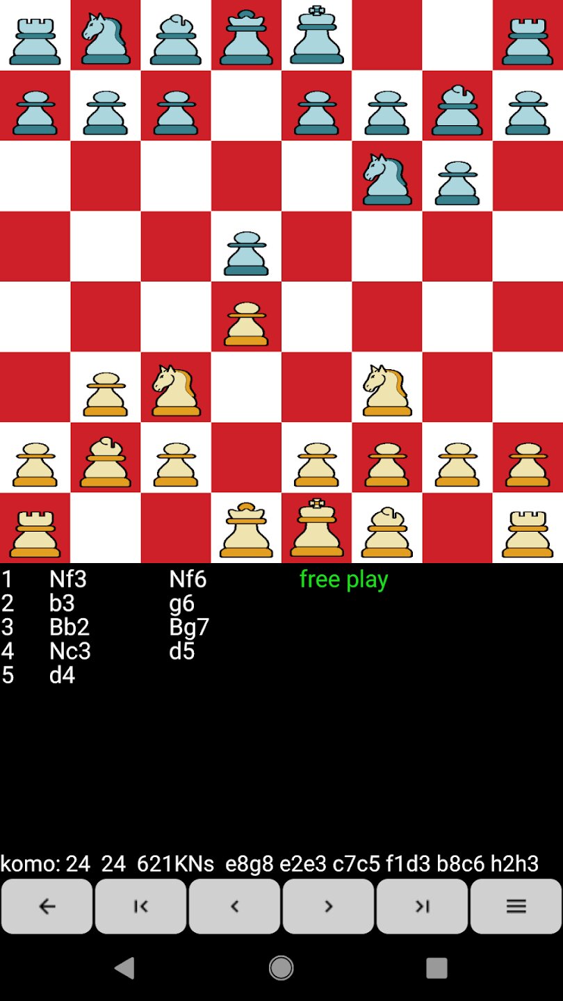 Приложение поддерживает универсальный шахматный интерфейс (UCI) и протокол связи с шахматным движком (WinBoard и XBoard), что позволяет пользователям играть против более мощных сторонних движков или даже играть турниры между движками. Движки импортируются в формате Android Open Exchange (OEX), в формате, совместимом с Android Chessbase, или напрямую с SD-карты. Настройка движка включает в себя контроль времени, размышления, бесконечный анализ, хэш-таблицы, несколько потоков, таблицы эндшпиля и наборы тестов открытия.