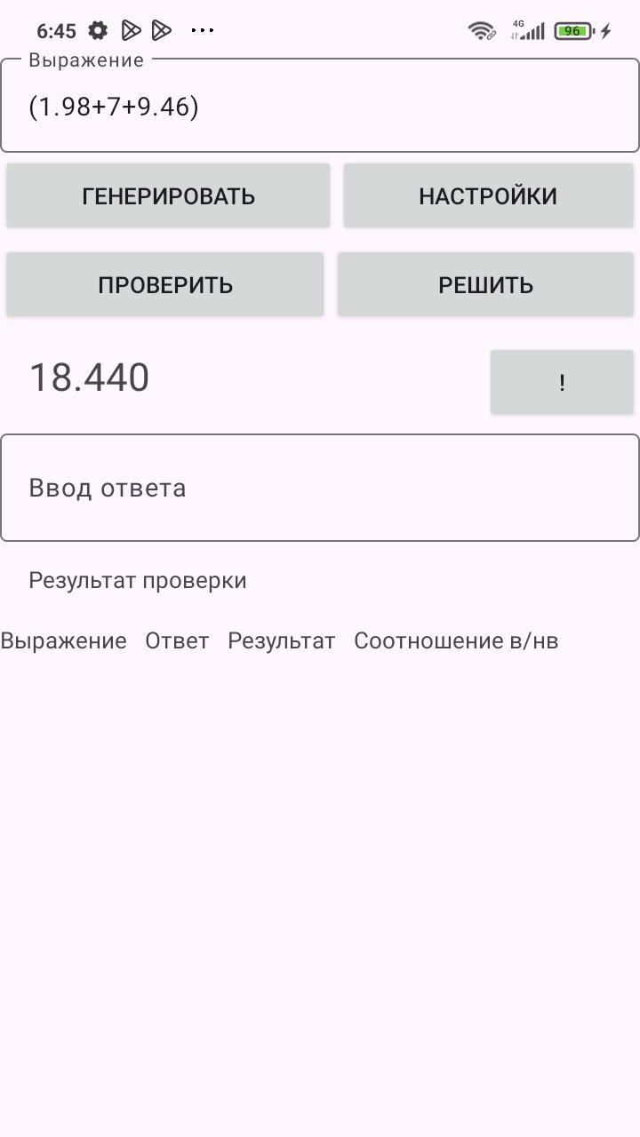Генерируешь выражение (опционально), вводишь ответ, проверяешь себя.