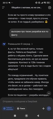 25 ноября 2025, 19:06 Дипсик что с тобой?! Картинки / ИИ С DeepSeek точно все хорошо?! Интернет серфер @Internet_serfer Просто гречка) Лётчик на Элитрах🇷🇺Intel Atom N270 ИИ 13,6K участников Вступить 5 комментариев по лайкам по дате Оставьте комментарий... Cat_Rovio_2 1 часТанкист Онлайн ModernTVRadio 1 час🇷🇺 А у меня нет таких проблем с Deepseek.