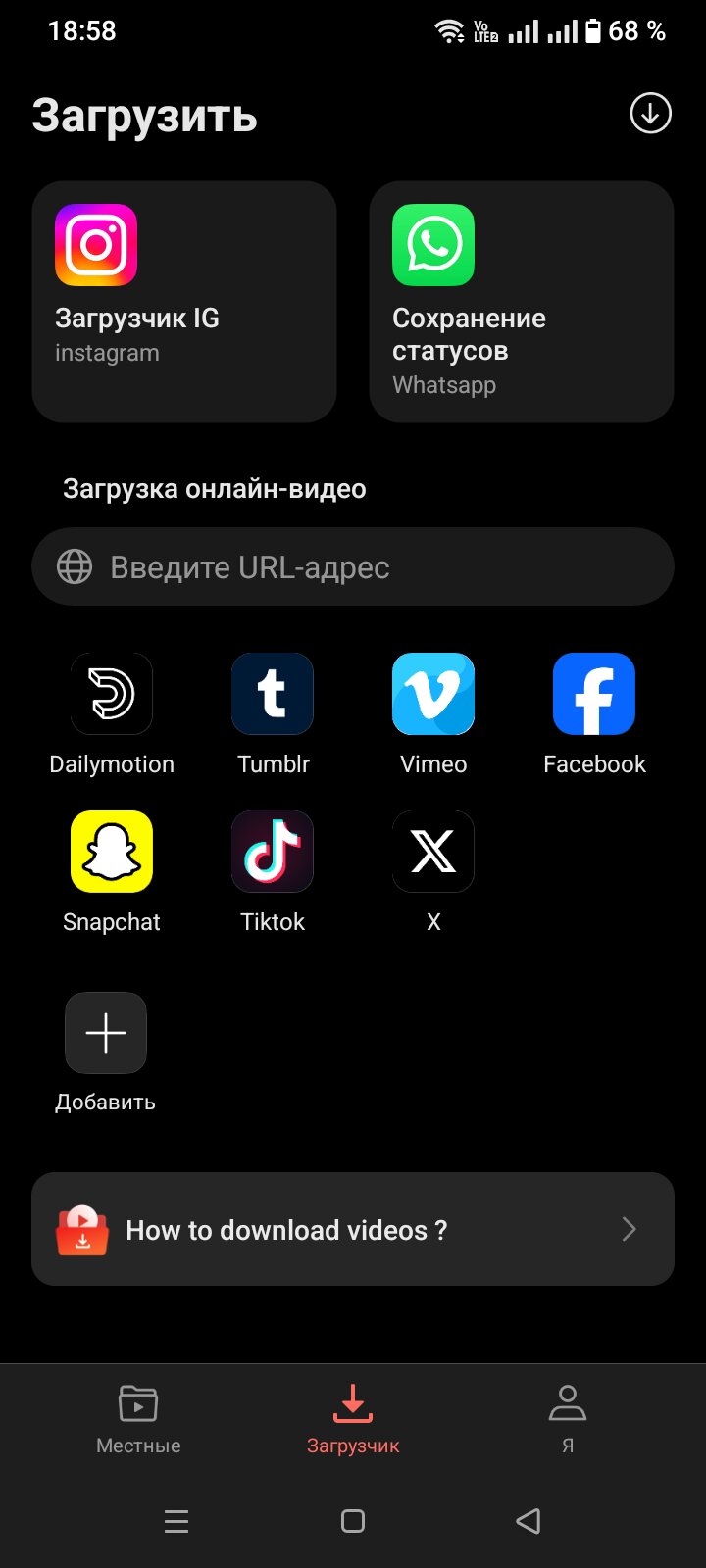 — Возможность скачивать видео с других источников (YouTube, TikTok и другие)