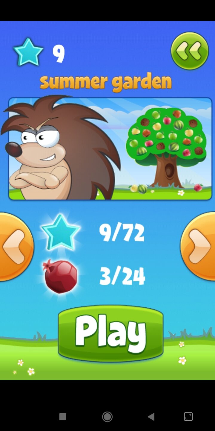 Вам нравятся ёжики, фрукты и простые игры? А что будет, если совместить всё это? Это будет Фруктовая история! Здесь не жалеют ни единого фрукта, сбивайте их все… Но чем? Ежами! Серьёзно, именно здесь вы сможете бросать ежей прямо в фрукты, чтобы выиграть. Но зачем вообще нужно это делать? Дело в том, что однажды ёжик ловил рыб и встретил милую ежиху. Они сразу полюбили друг друга, и ёжик решил сделать предложение с помощью пойманной рыбки. Но ежиха ответила ему, что она хочет фруктов. И ёжик решил достать эти фрукты с помощью своей нечеловеческой смекалки. Игра достаточно проста, чтобы сразу понять, как играть: всего то нужно двигать платформу и ловить ежа вместе с фруктами. Помните так же, что количество ежей и времени на каждом уровне — ограничено.